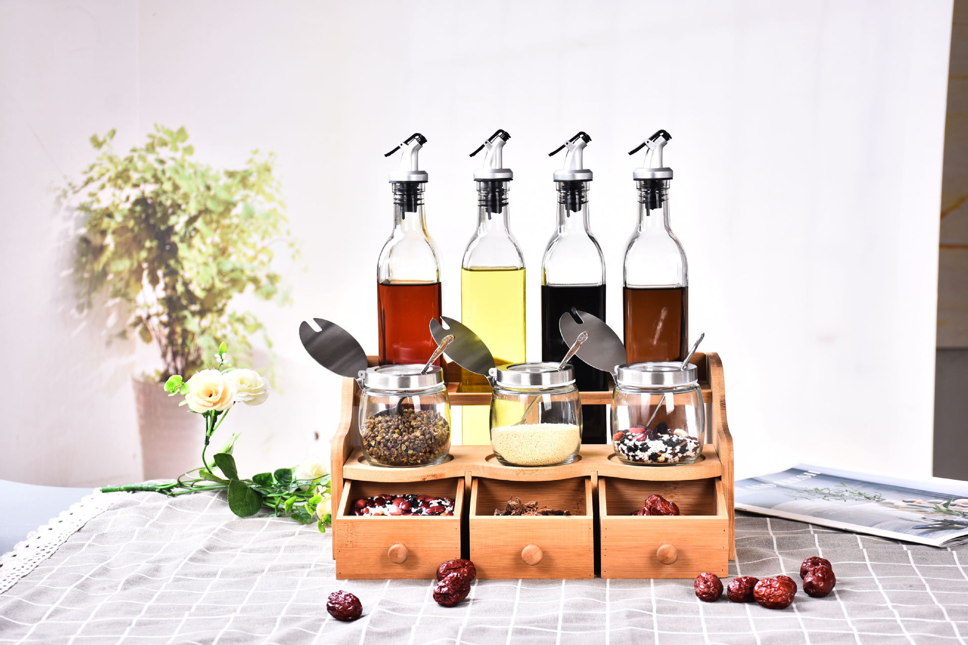 Product Name | Hot Sale 8 Piece Seasoning Storage Box for Salt Sugar Pepper & 5 Piece Glass Oil Bottle Ceramic Spice Jar Set | |||||