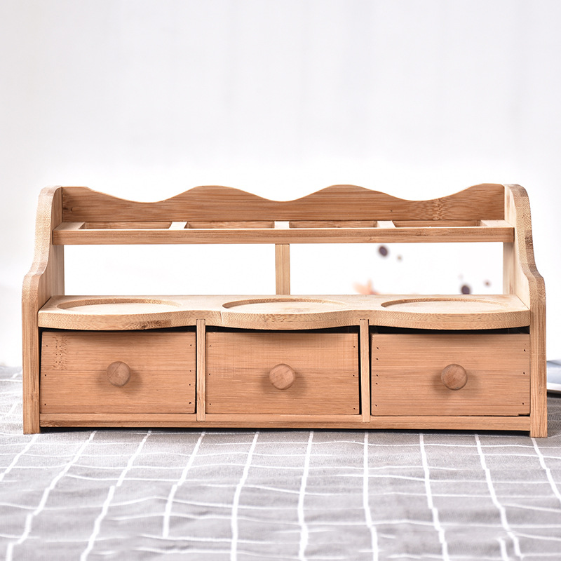 Modern Bamboo Kitchen Rack Set Double Tiers Adjustable Glass Jar Holder CNLF Drawer Tray for Spice Storage Seasoning Bottles