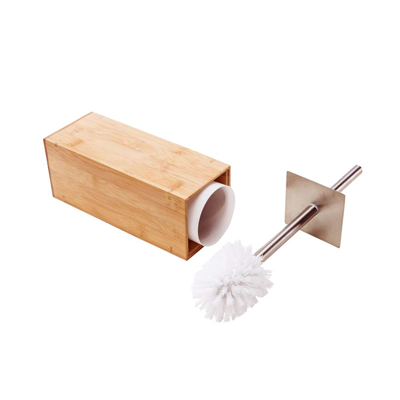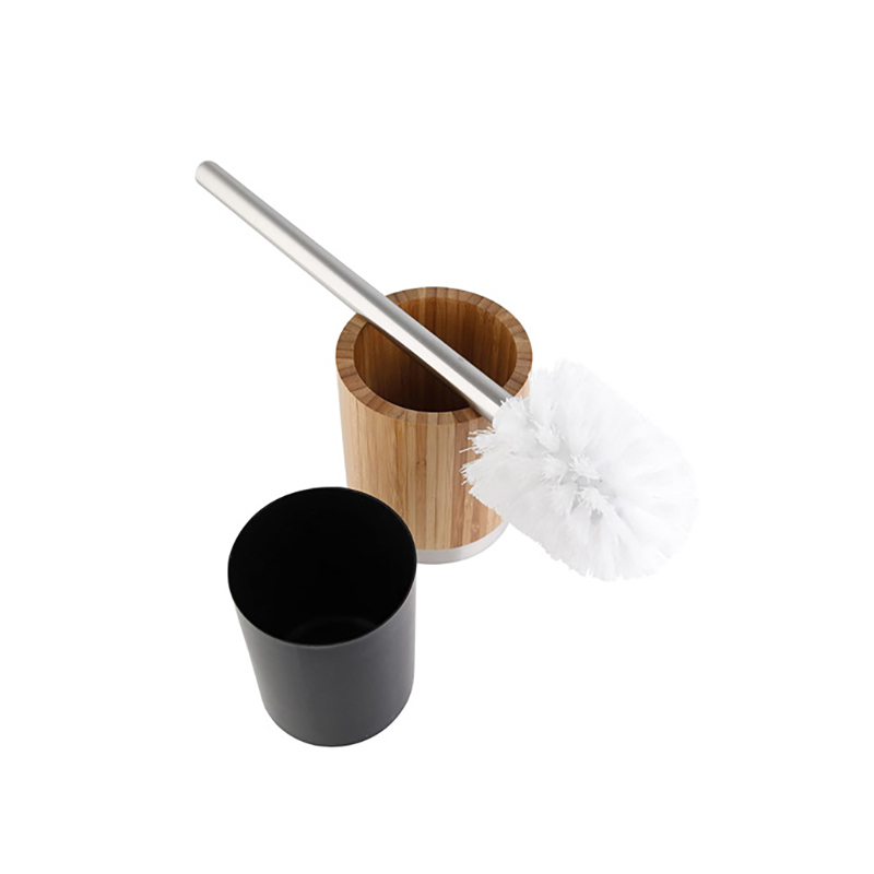 Modern Bamboo Toilet Brush Set with Hidden Stainless Steel Handle Plastic Cup Holder-Elegant Bathroom Cleaning Accessory