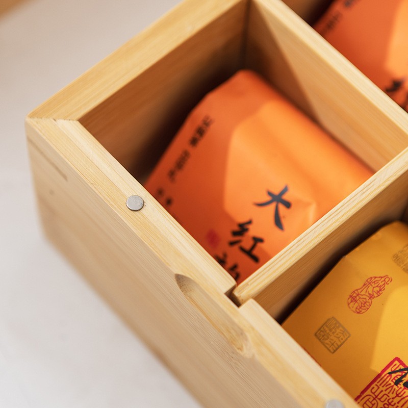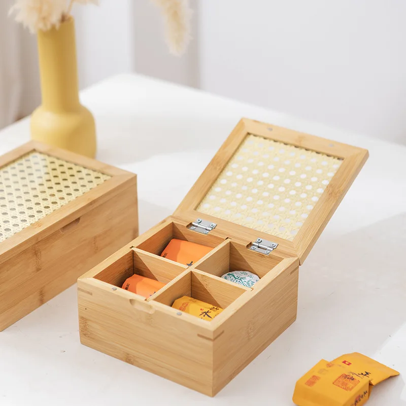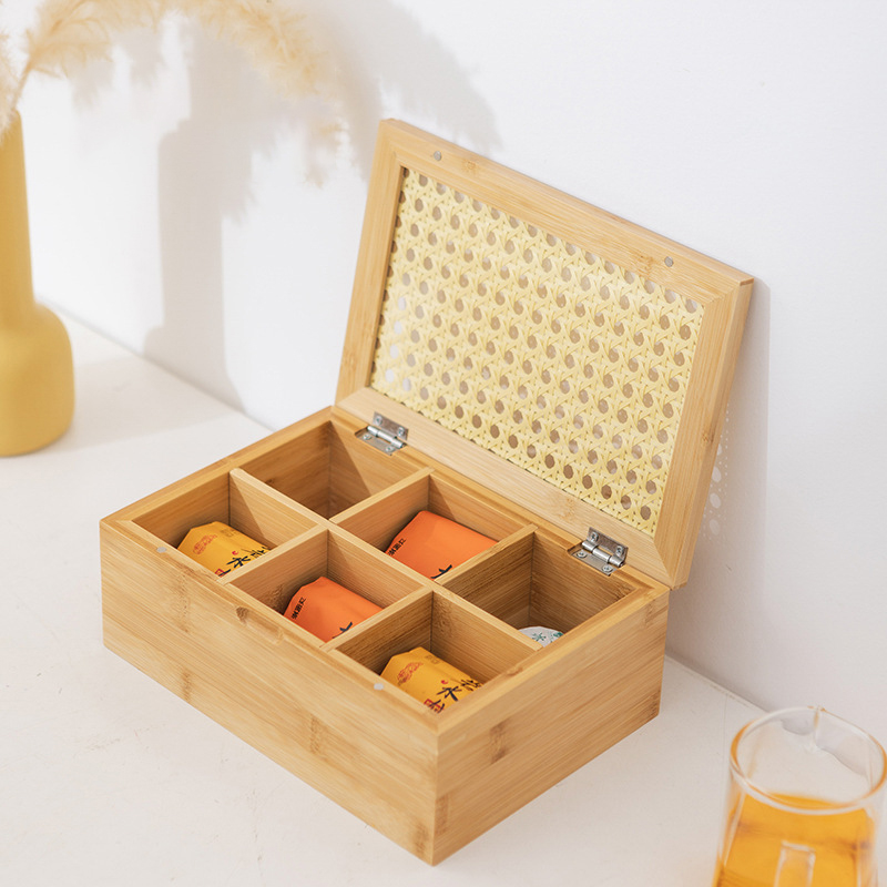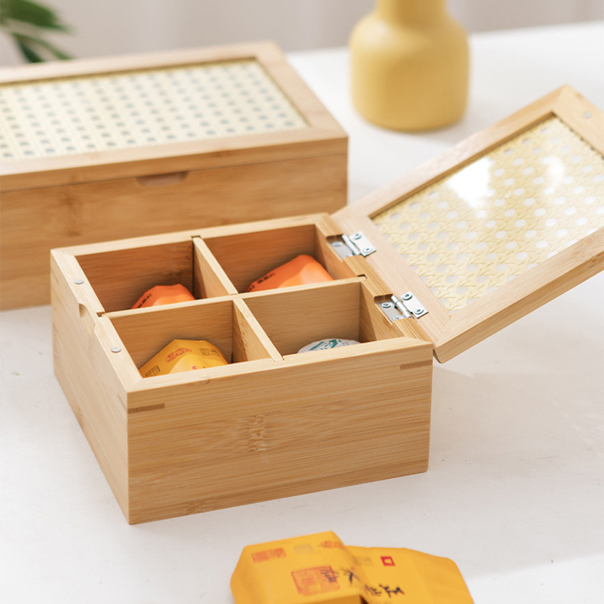 Bamboo Tea Box Organizer – Wood Tea Chest with Slide-Out Drawer & Acrylic Window. Magnet Lid Keeps Teabag Fresh