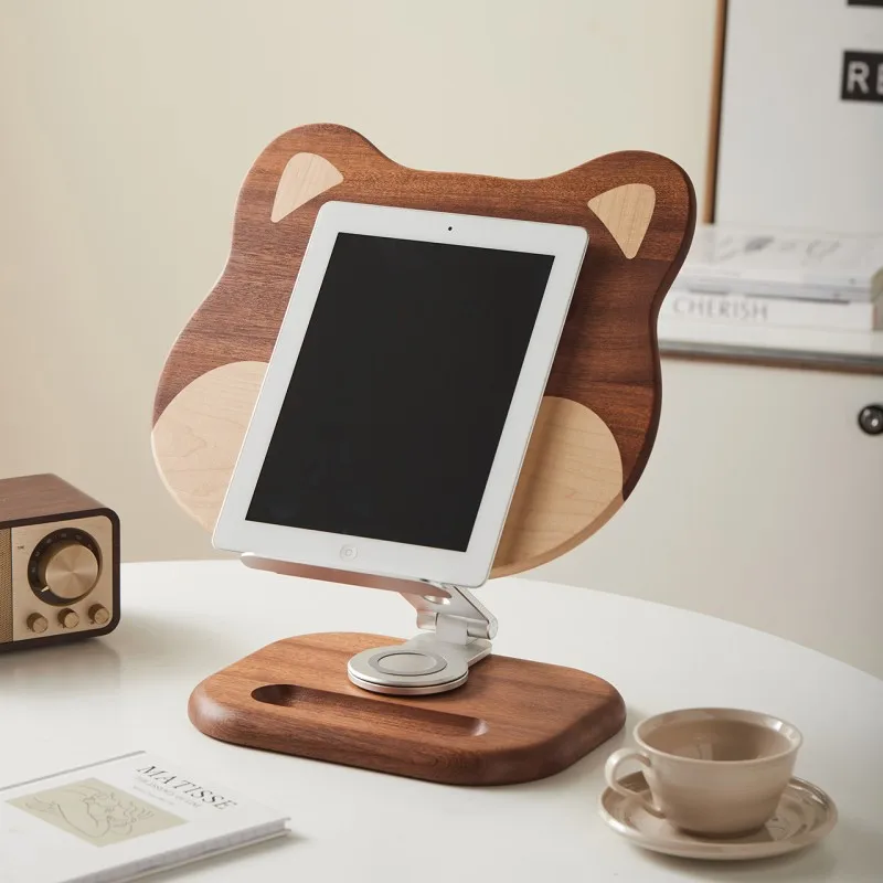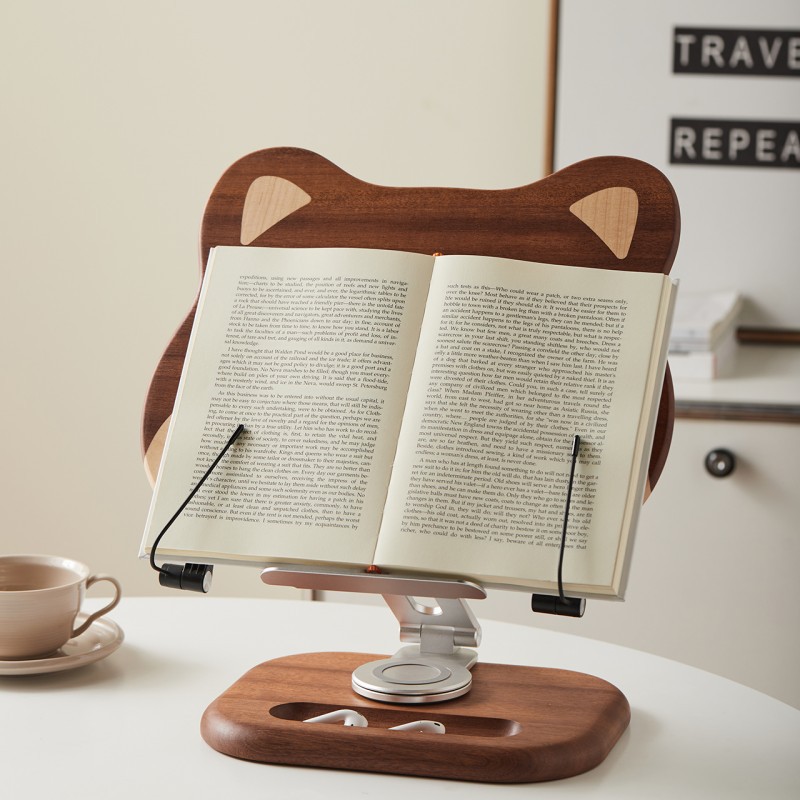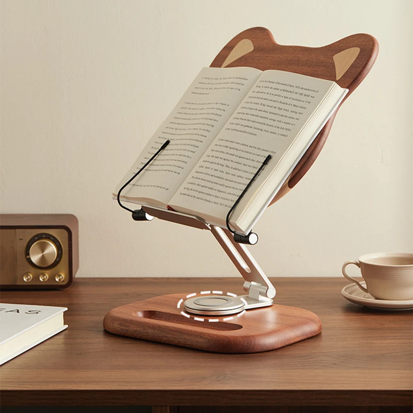 Modern Wood Cartoon Bookshelf with Reading Stand Tablet Stand can be Raised Lowered Phone Book Holder for Convenient Storage