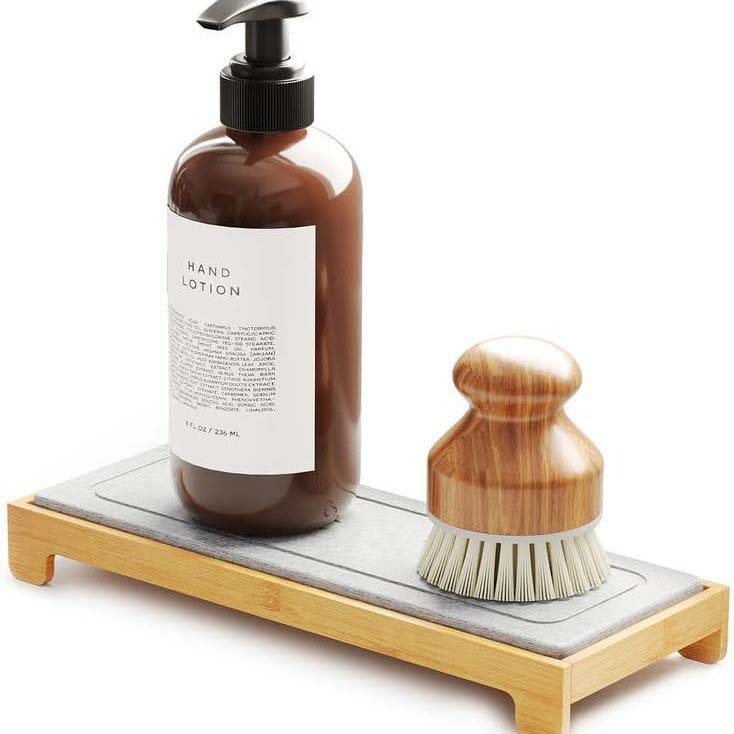 Bamboo Rack Stone Mat For Bathroom Vanity Countertop Hand Soaps & Plants & Toiletries Fast Drying Water Absorbing Stone Tray