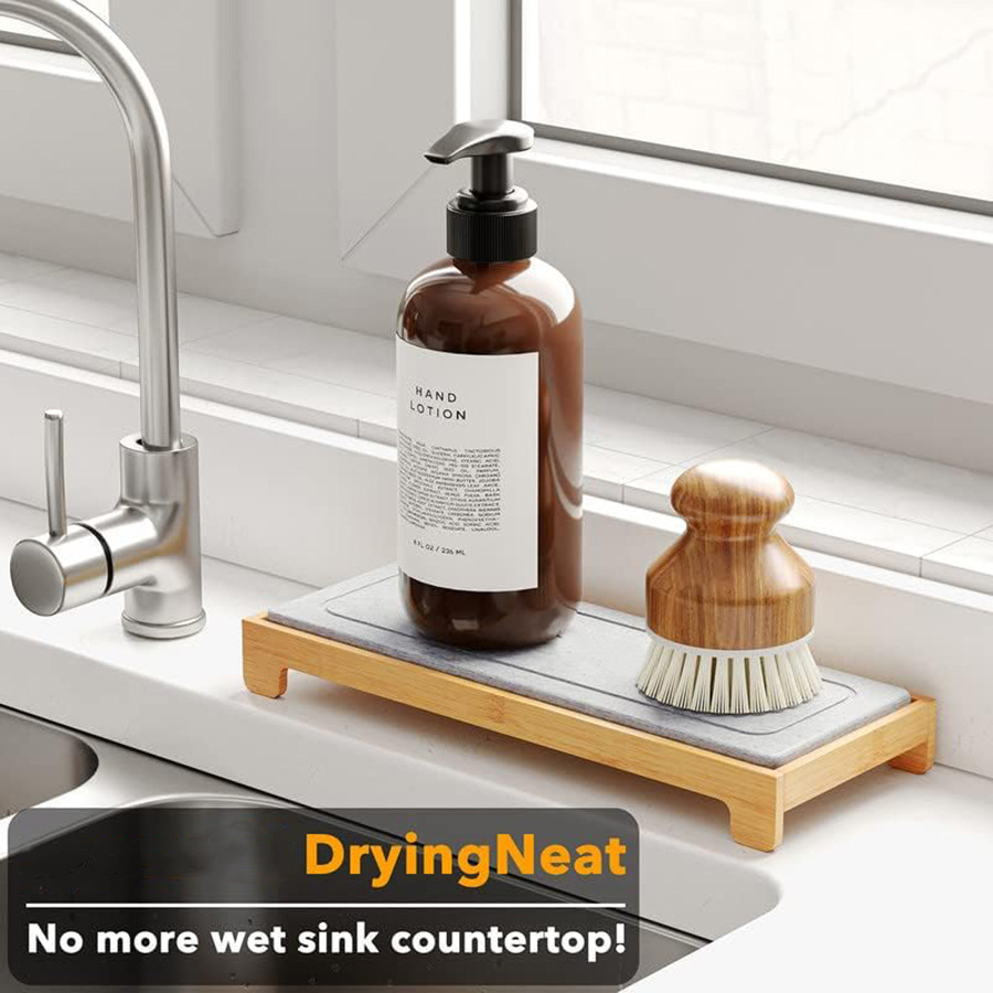 Multi-function Natural Bamboo Built in Dish Rack Diatomite Stone Dish Drying Mat for Bathroom Counter Living Room