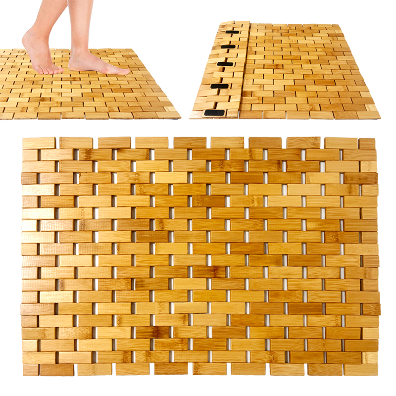 Bamboo Shower Mat Water Resistant Bamboo Bath Mat Non Slip Made of Natural Bamboo Applied for Old Men Children