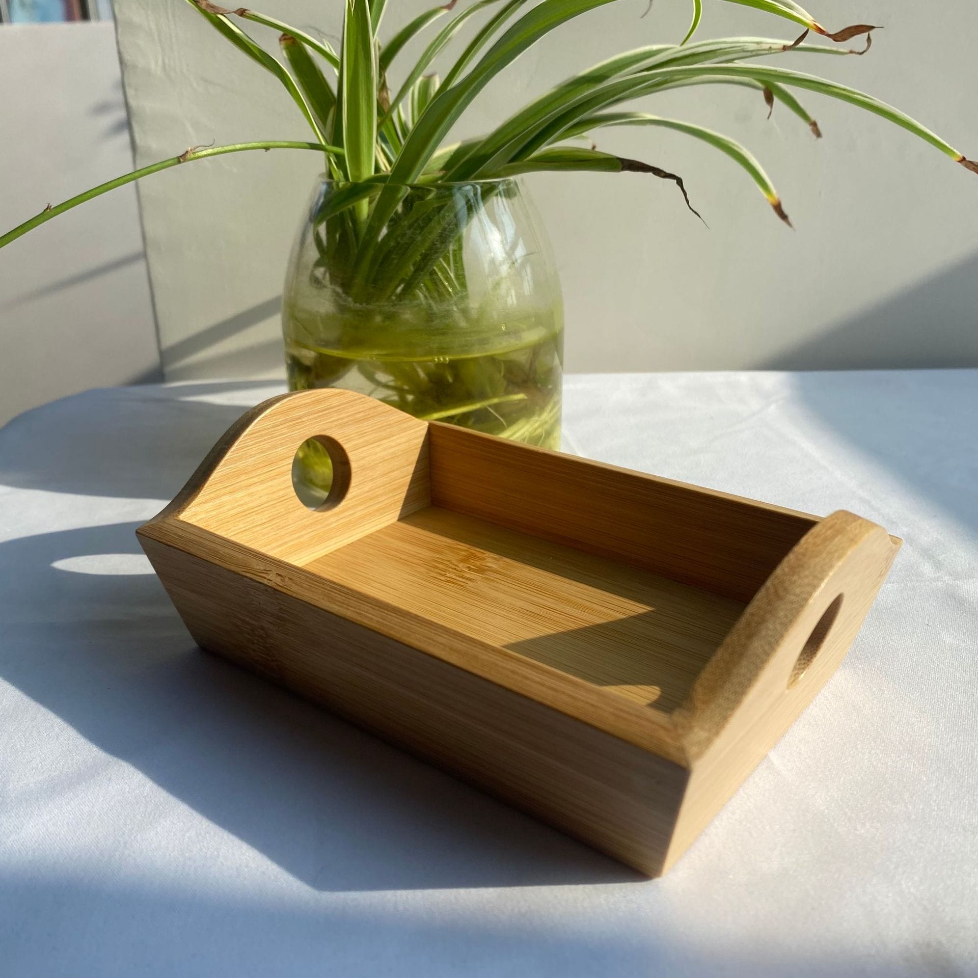 Natural Bamboo Multi-Functional Tray for Kids Dining Dry Fruit Serving Plate Divider for Nuts Snack Candy-Small Wooden Plate