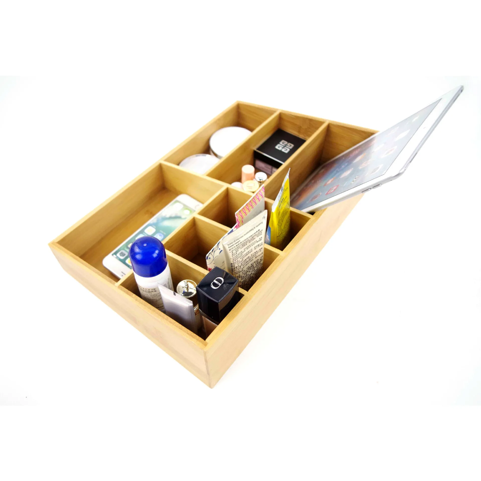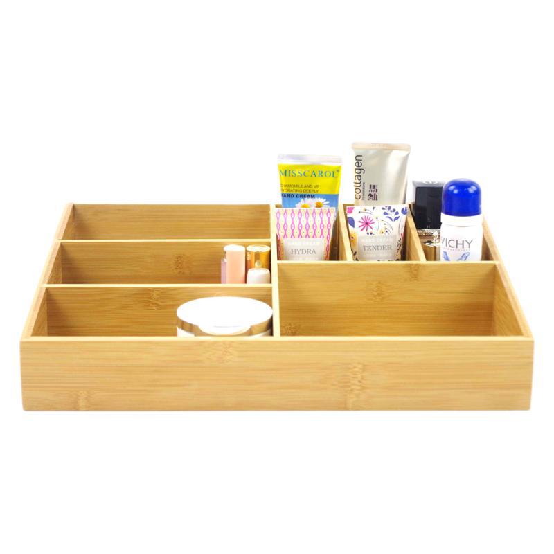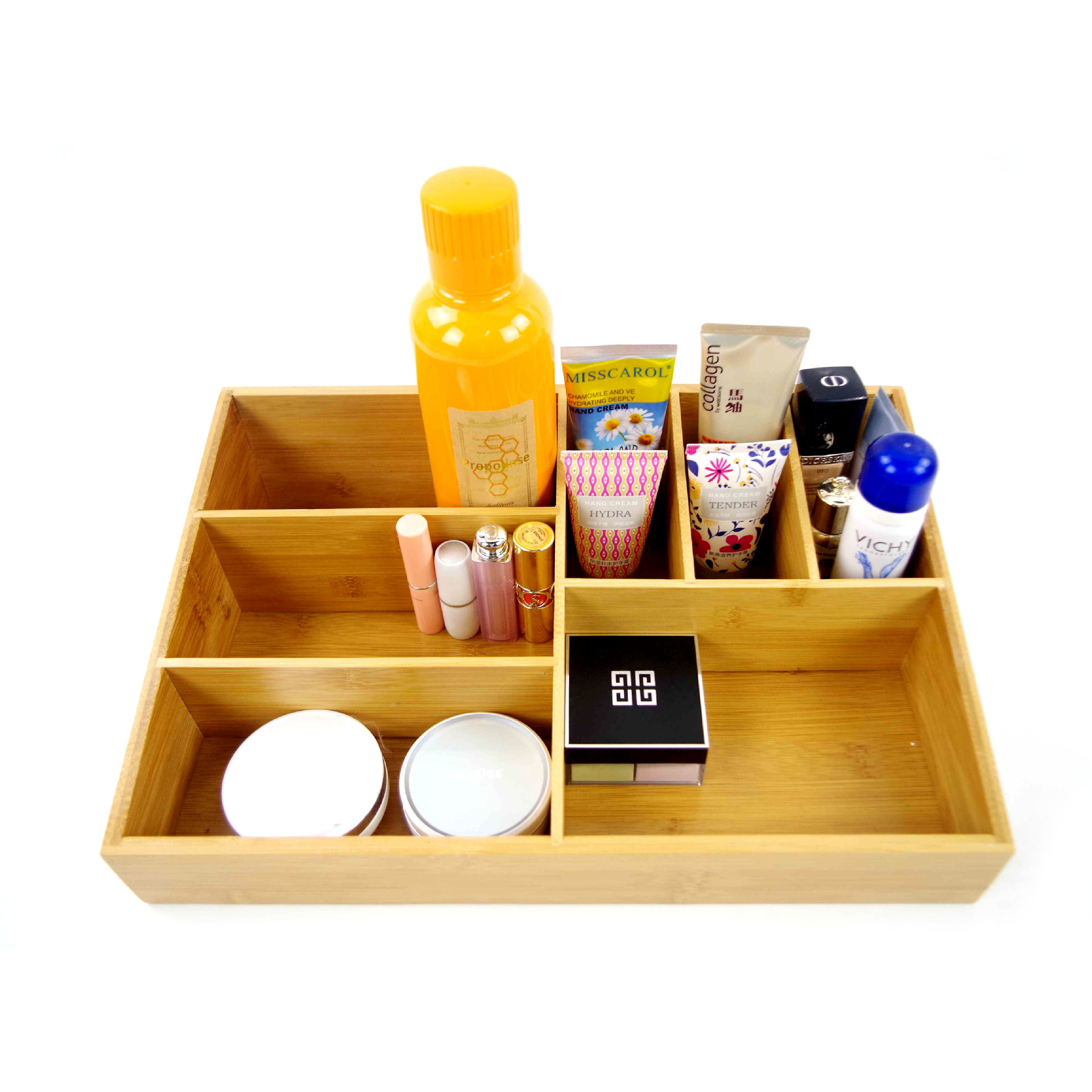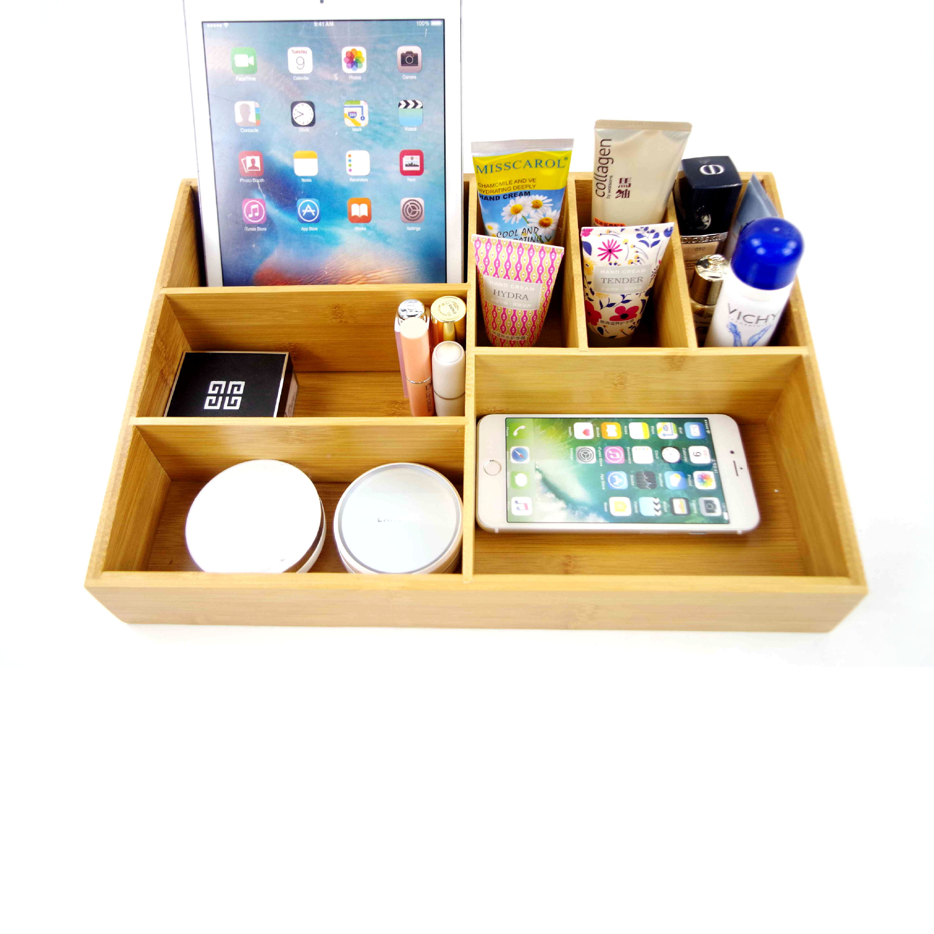Natural Bamboo Wood Tray Organizer Bathroom Countertop Makeup & Office Accessory Storage for Jewelry Display & Desk Organization