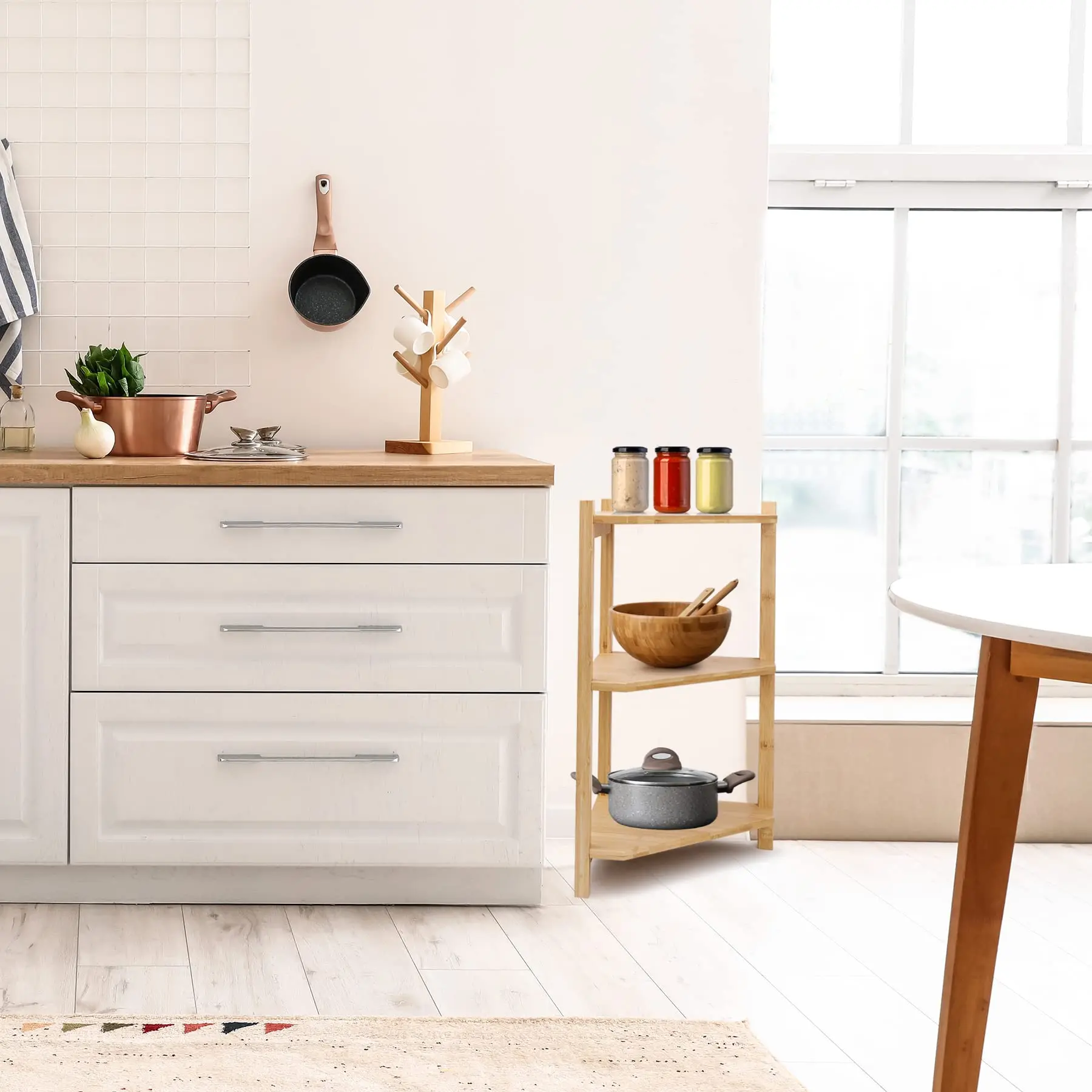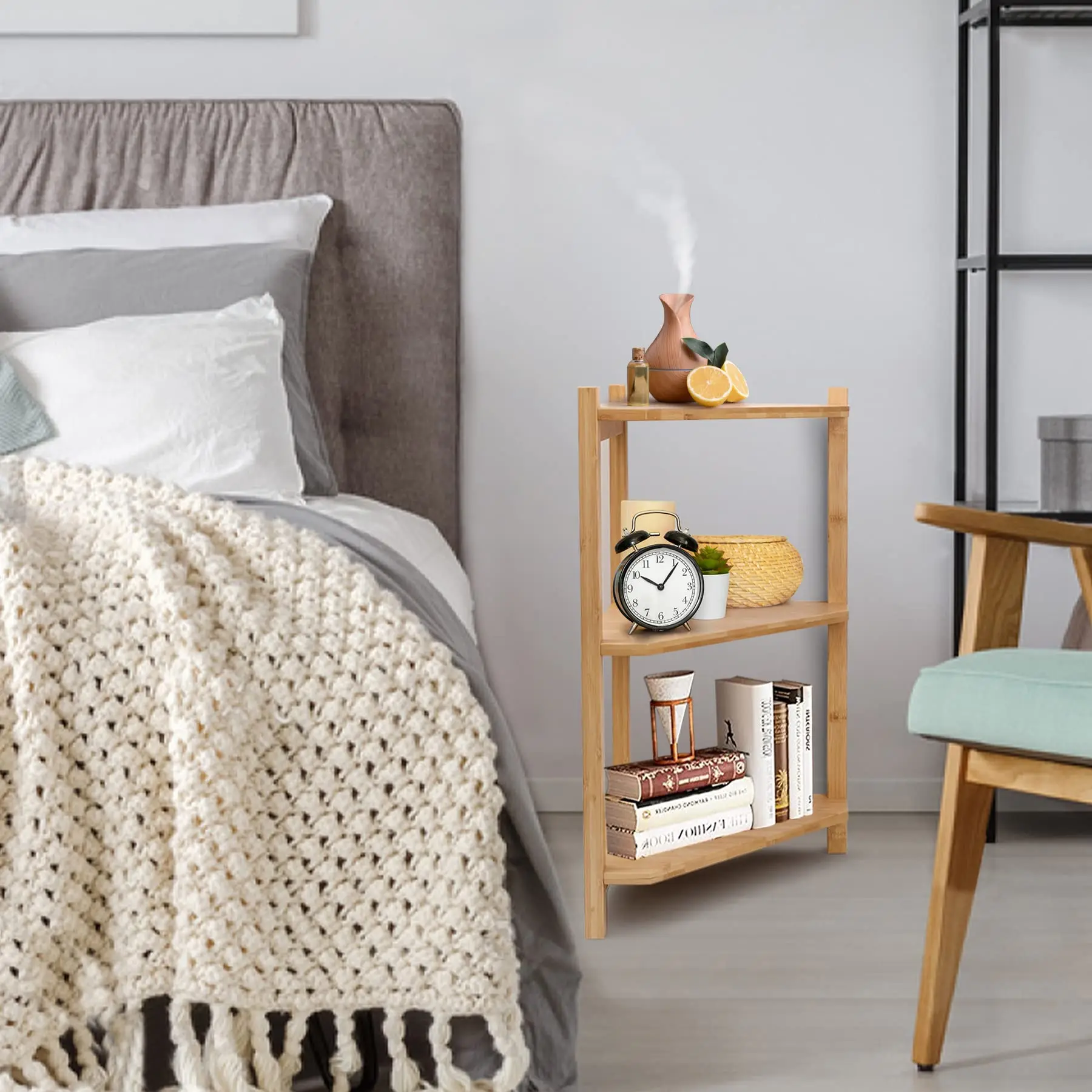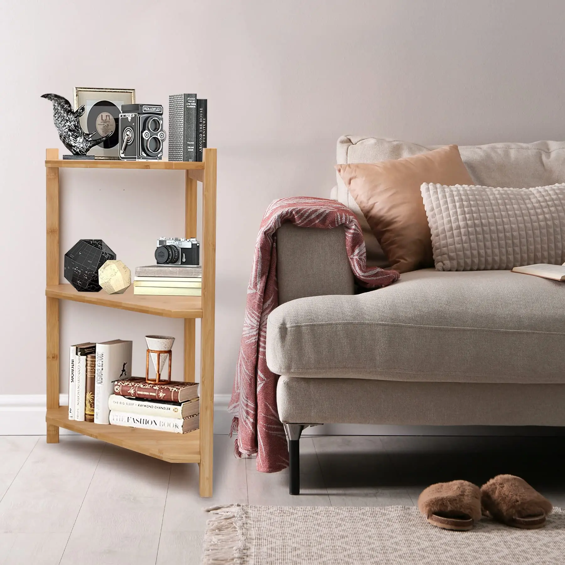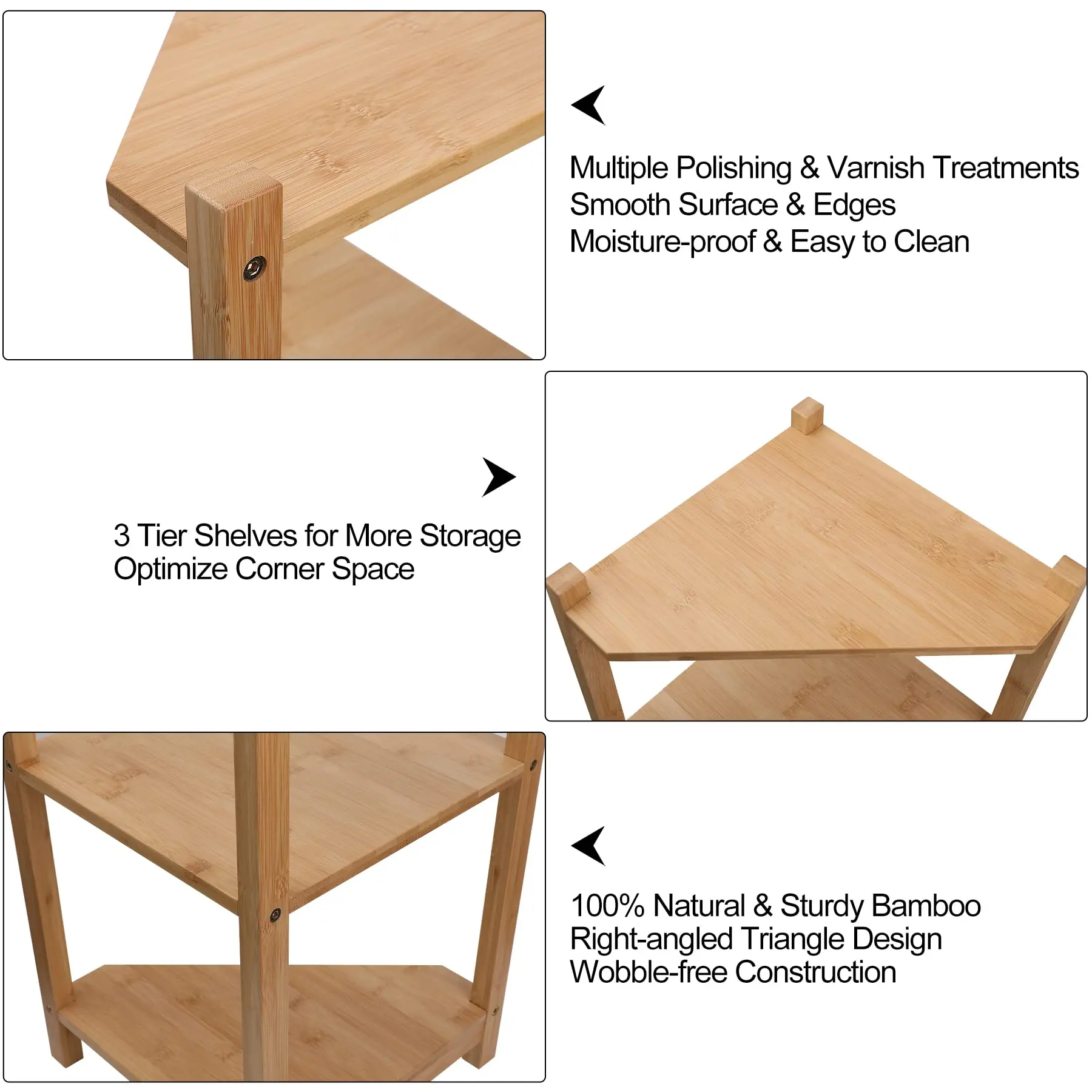 New Arrival 3 Tier Kitchen Bathroom Standing Shelf Display Rack Storage Rack Plant Stand Bamboo Corner Shelf Stand