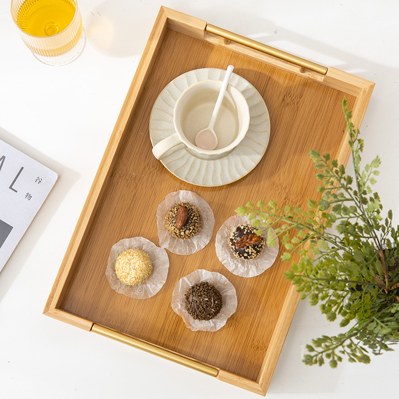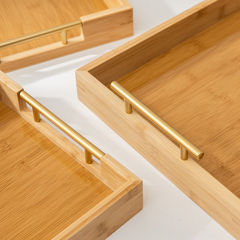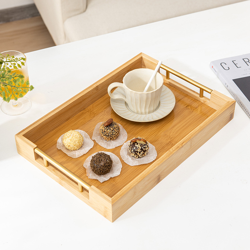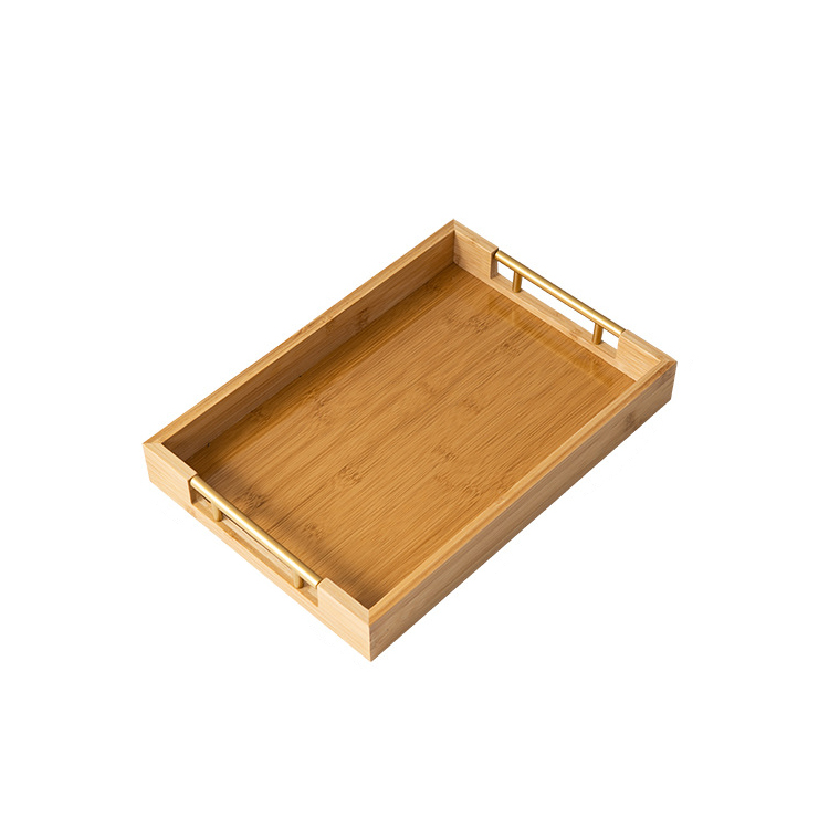 New Arrival Bamboo Dinner Tray Kitchen Tray Rectangle Coffee Table Decorative Tray Food Serving Platter With Metal Handles Dinnerware