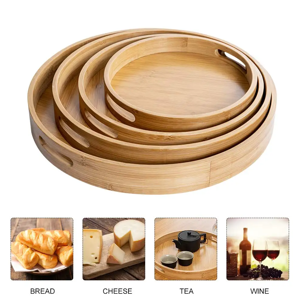 New Arrival Bamboo Tray Round Food Tray Luxury Serving Platter China Wholesale Bamboo Serving Tray With Handles