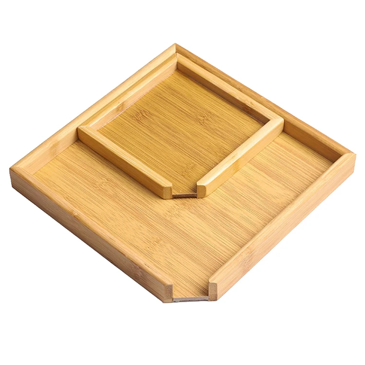 New Arrival Custom Square Natural Bamboo Tray Serving Trays Chinese Puer Tea Cake Brick Breaking Tray Dinnerware