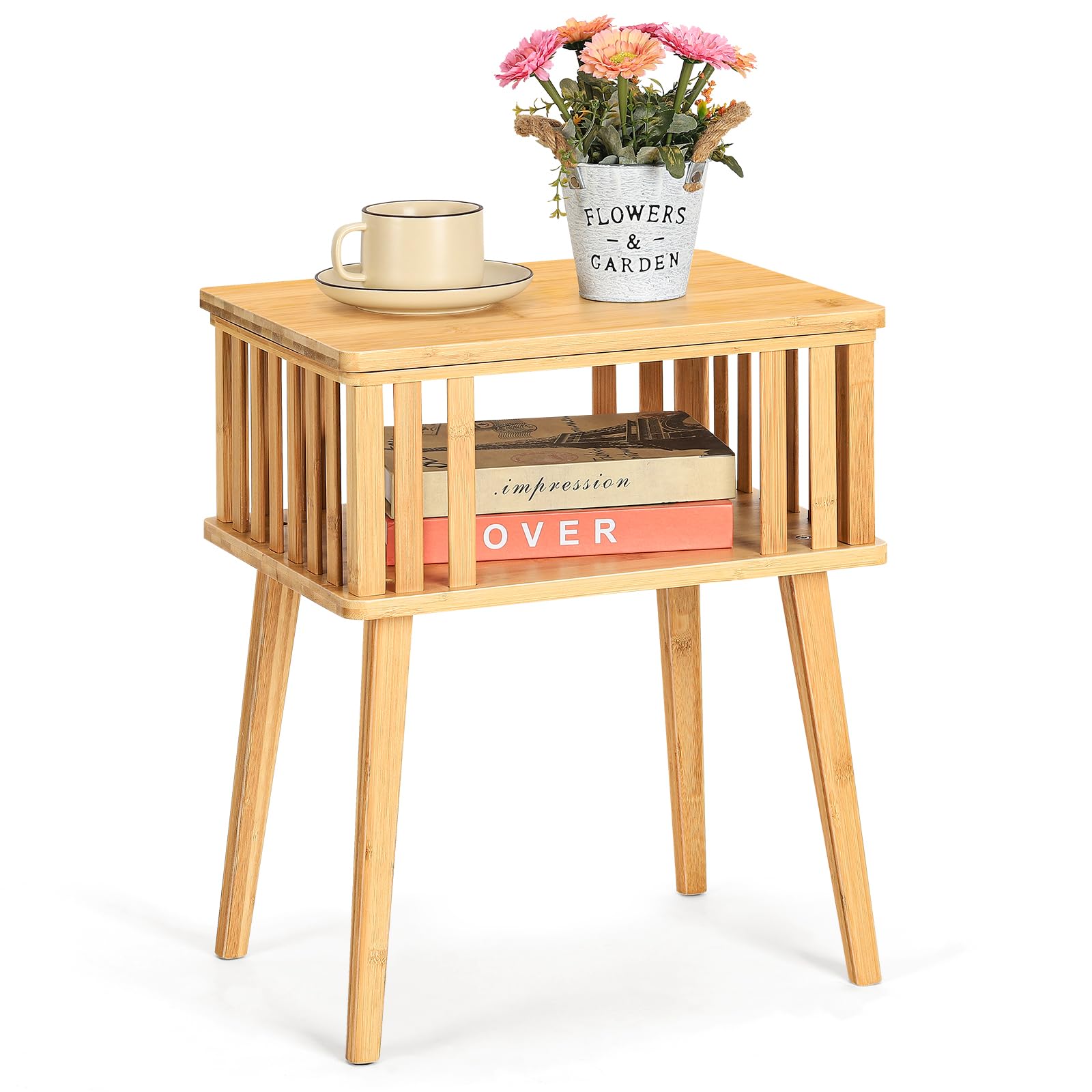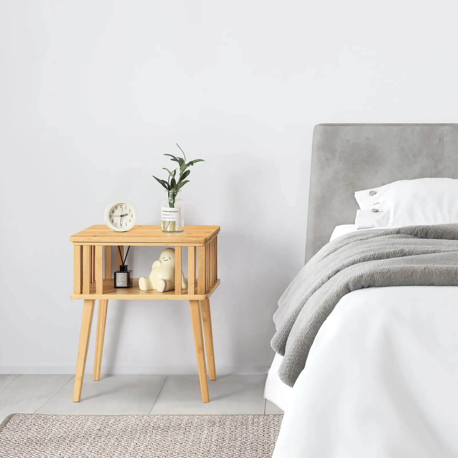 Nightstand Bedside Table Bamboo End Table with Open Storage Compartments Minimalist End Table Furniture for Living Room