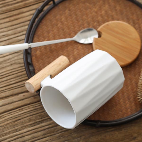 Nordic simple ceramic cup with wooden handle cover-320ml