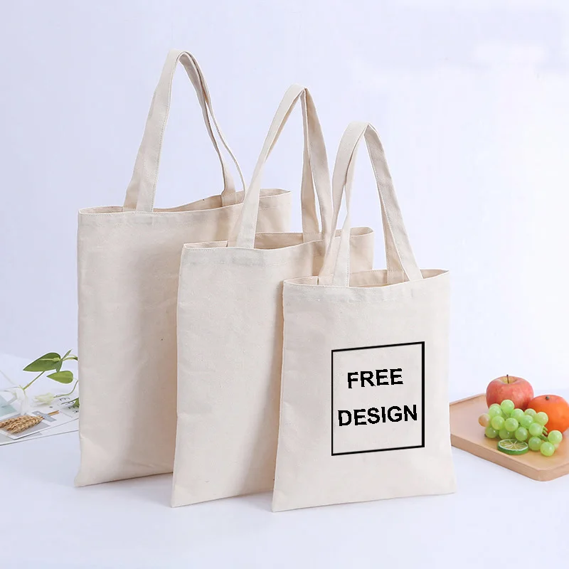 OEM Size Custom Logo Printed Eco Friendly Recycled Reusable Plain Blank Organic Calico Cotton Canvas Grocery Shopping Tote Bag