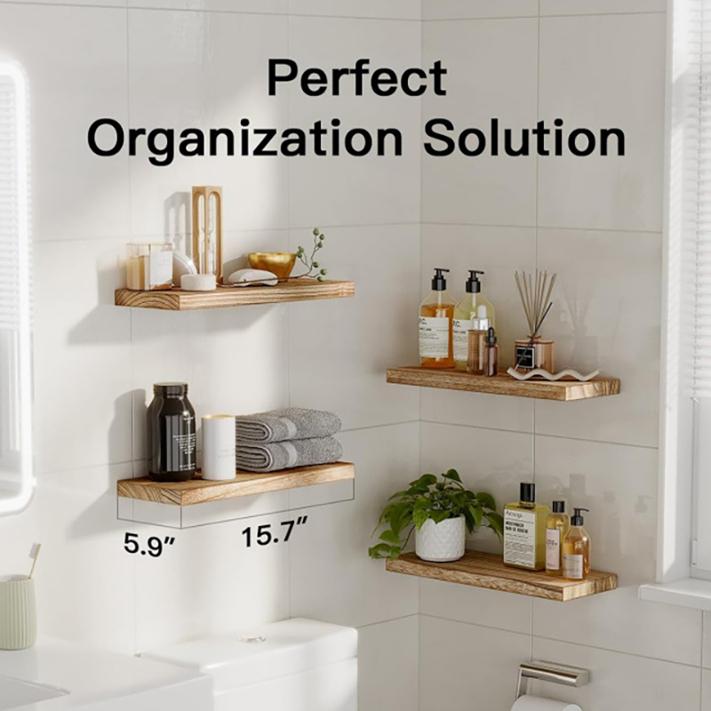 Paulownia Wood Wall Shelf Natural Wooden Floating Shelf for Bathroom Living Room Wardrobe-Tool Use