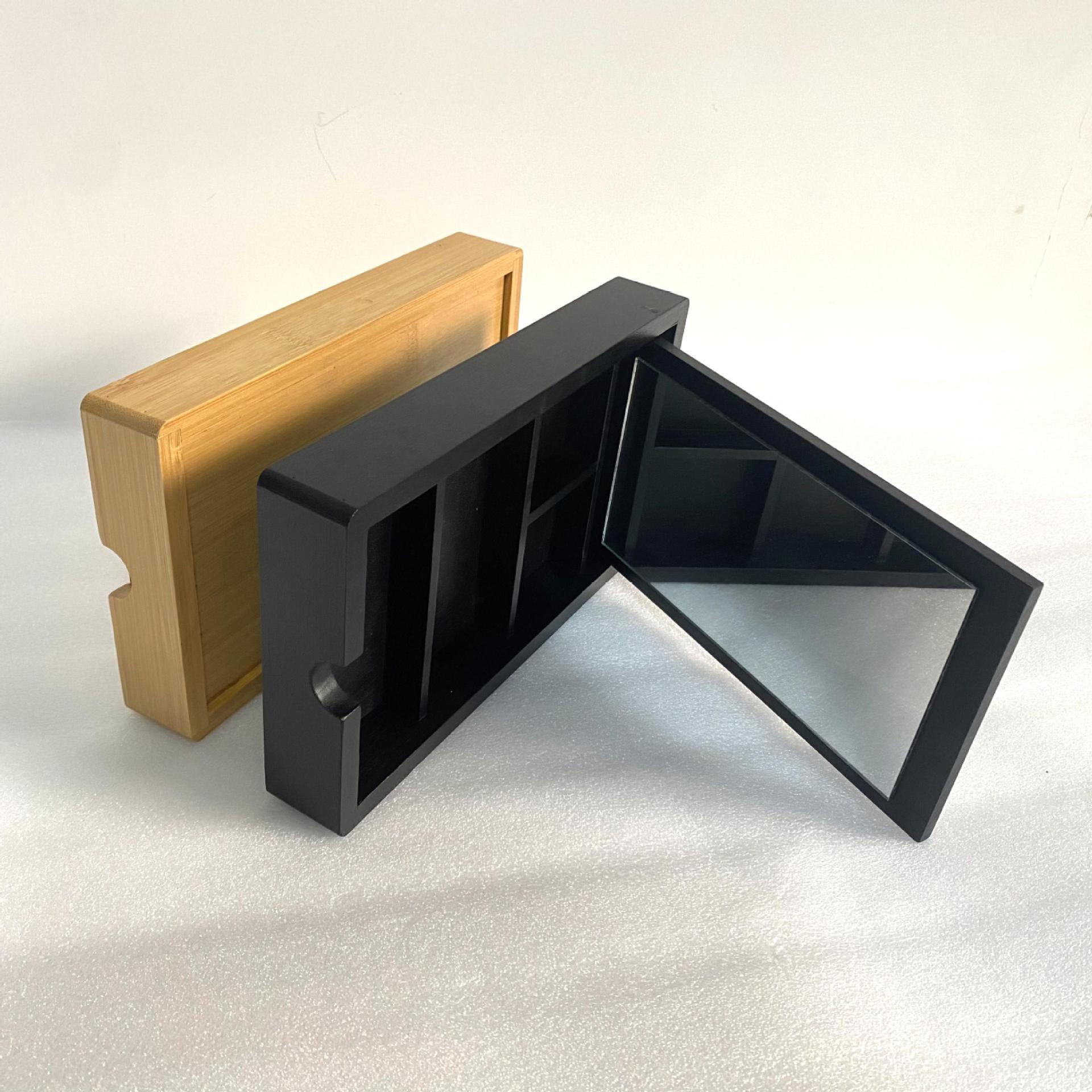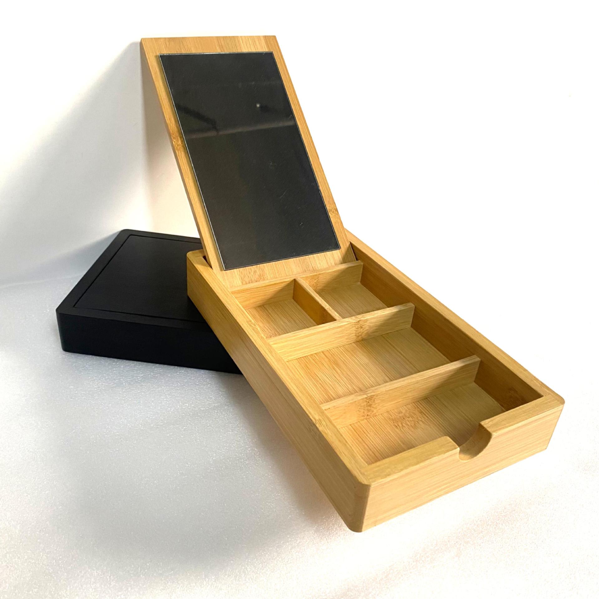 Personal Design Bamboo Jewelry Bin Cosmetic Organizer Storage Box with Rectangle Mirror
