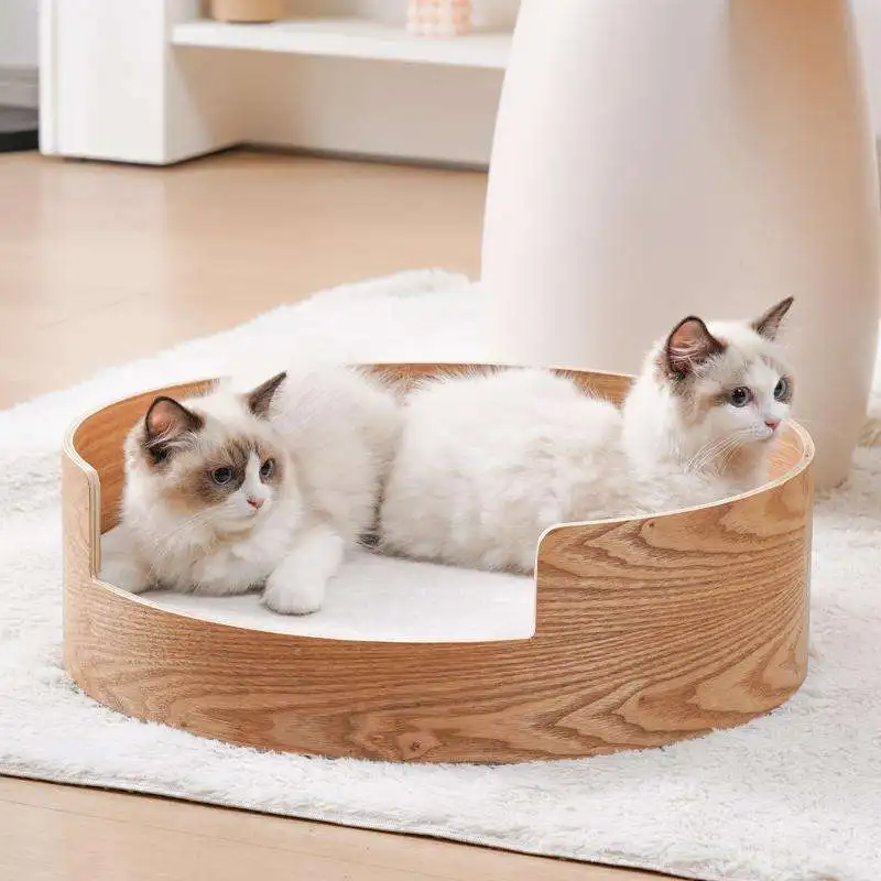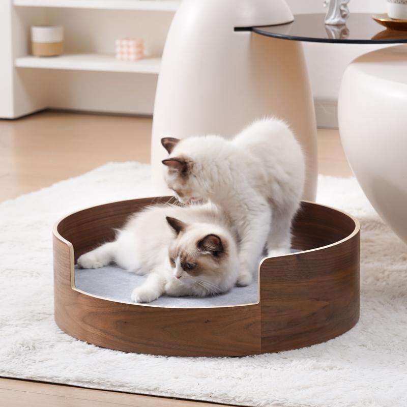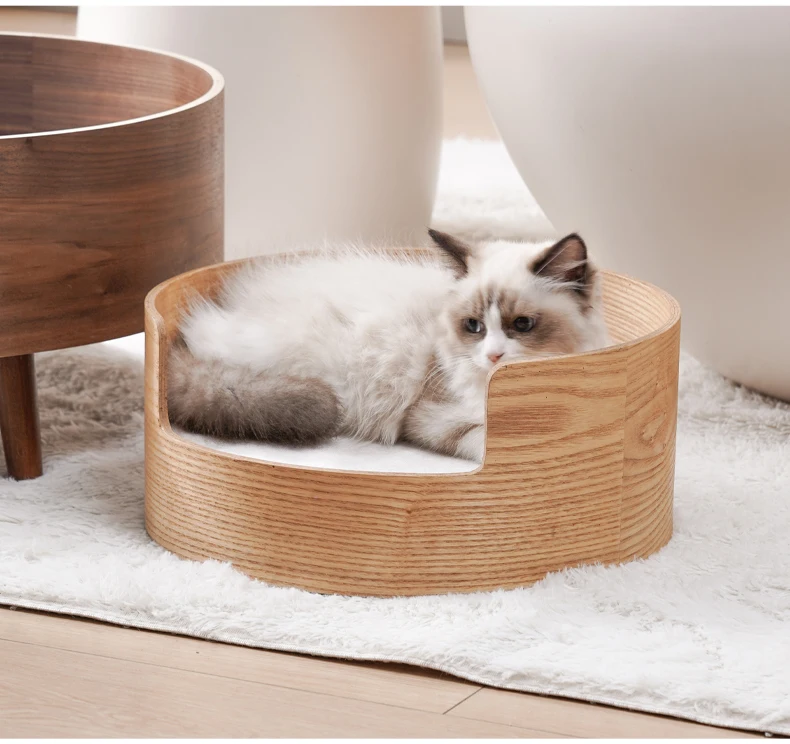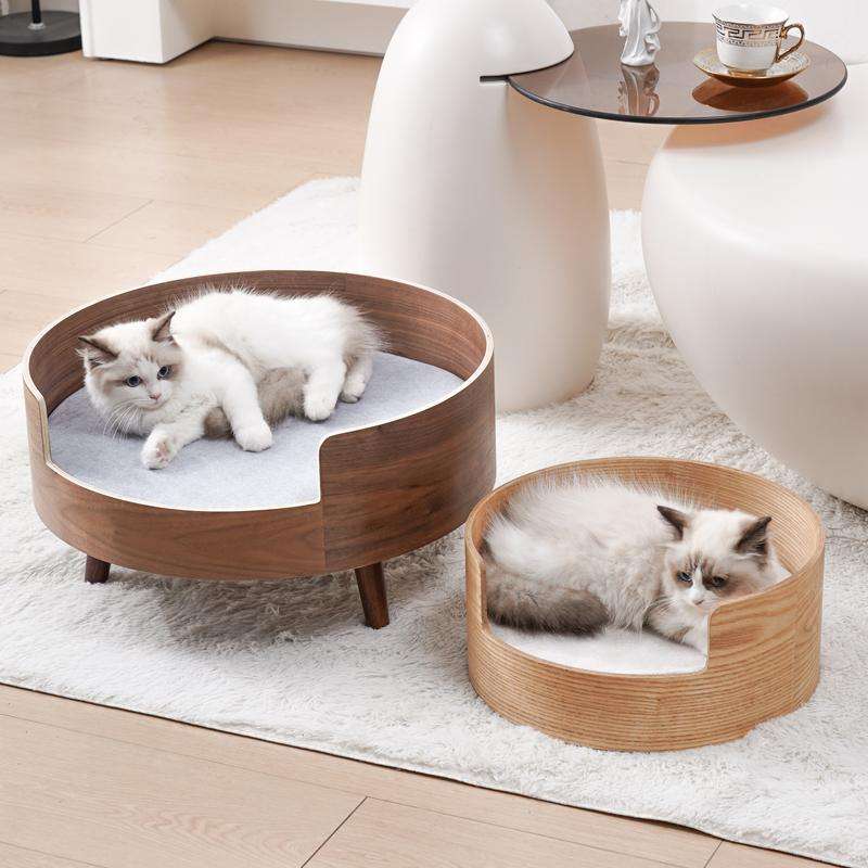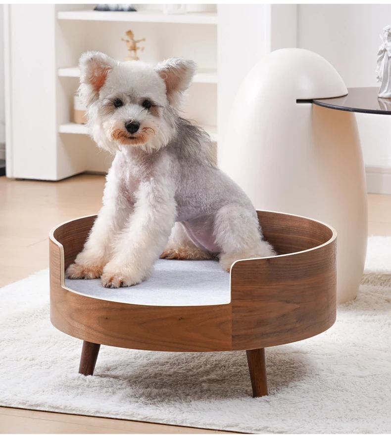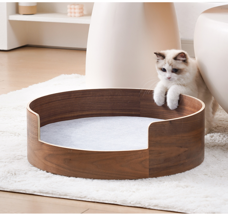 Pet Bed Solid Wood with Plush and Foam Washable Cat and Dog Bed with Animal Pattern