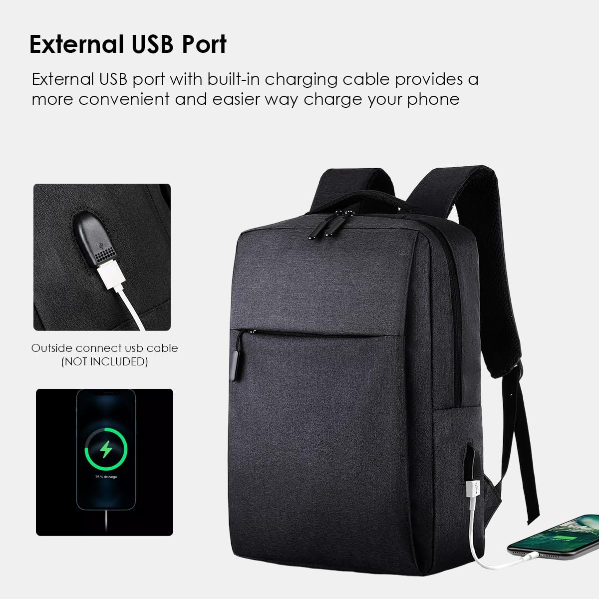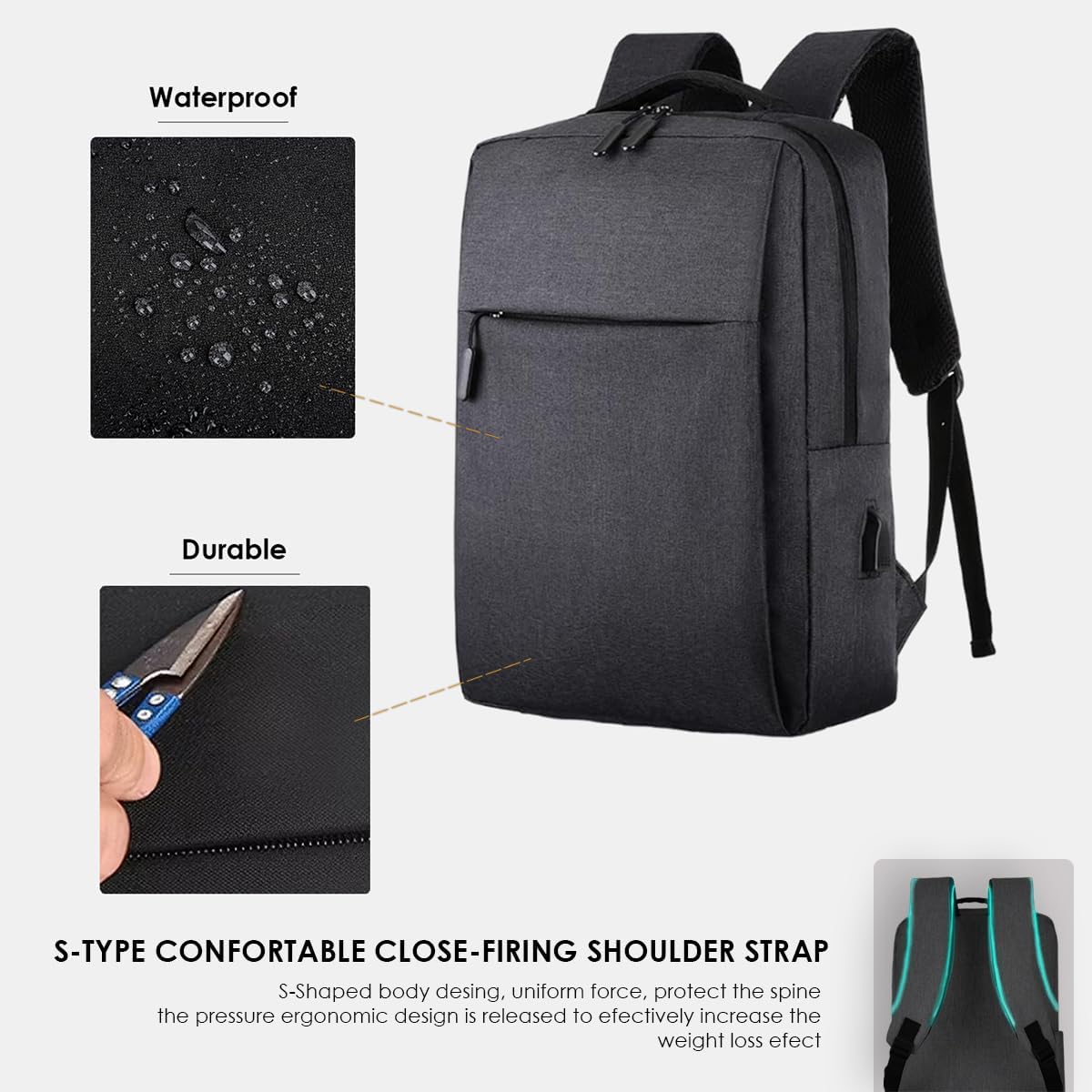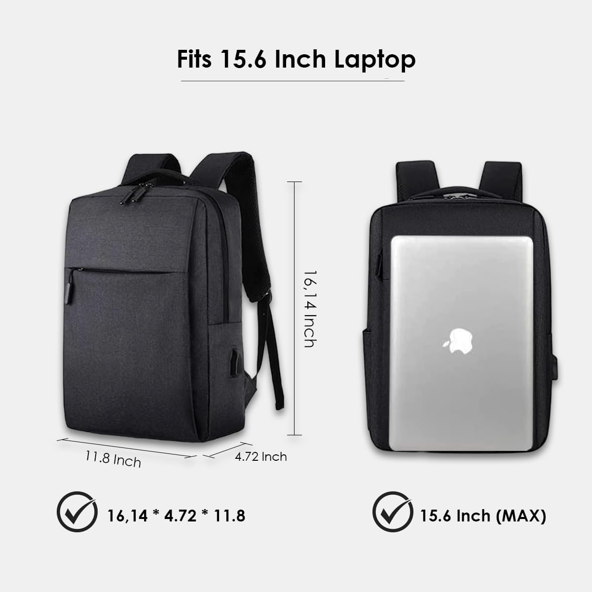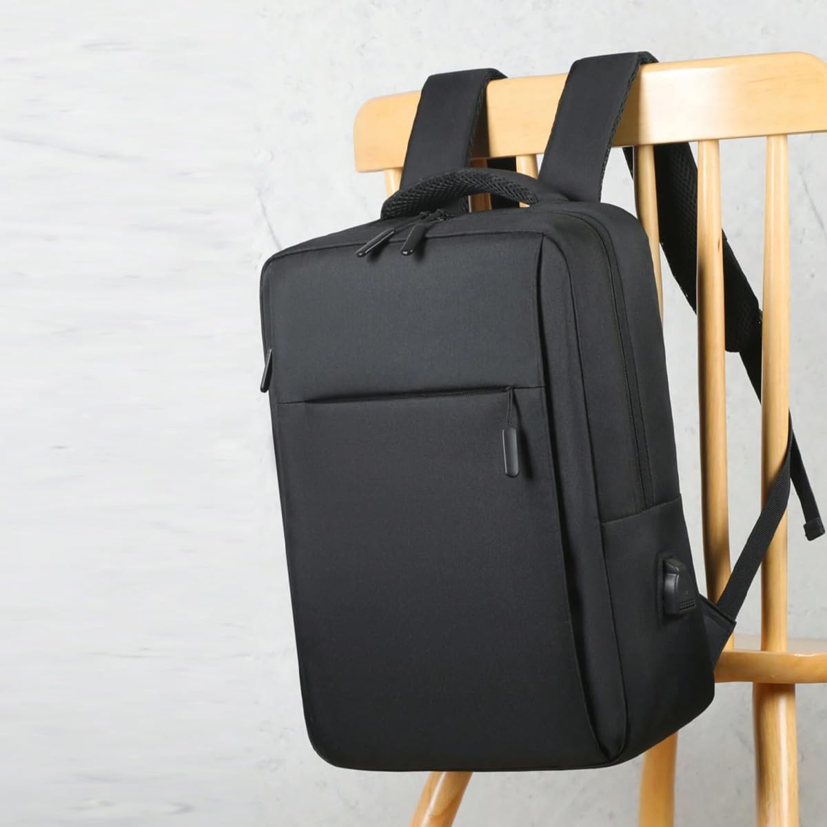 Introducing our Elegant Black Laptop Backpack for Men and Women. the perfect blend of style and practicality for professionals on the go. Crafted from high-quality water-resistant materials. this backpack ensures your belongings stay safe and dry. Its spacious interior is designed to accommodate laptops up to 15.6 inches+. with ample room for accessories. documents. and other essentials. The ergonomic design features breathable mesh padding on the back and shoulder straps. providing maximum comfort during extended wear. Reinforced stitching and durable materials guarantee longevity. while the anti-theft features offer peace of mind wherever you go. This backpack also includes a built-in USB charging port. allowing you to stay connected and powered up throughout the day. The luggage strap provides added convenience during travel. securely attaching your backpack to your suitcase. With additional side pockets for water bottles or umbrellas. this backpack is designed to meet all your needs. Whether you’re heading to the office. traveling for business. or simply navigating your daily routine. our Elegant Black Laptop Backpack for Men and Women is the ultimate companion for the modern professional. Order yours today and experience the perfect combination of elegance and functionality.