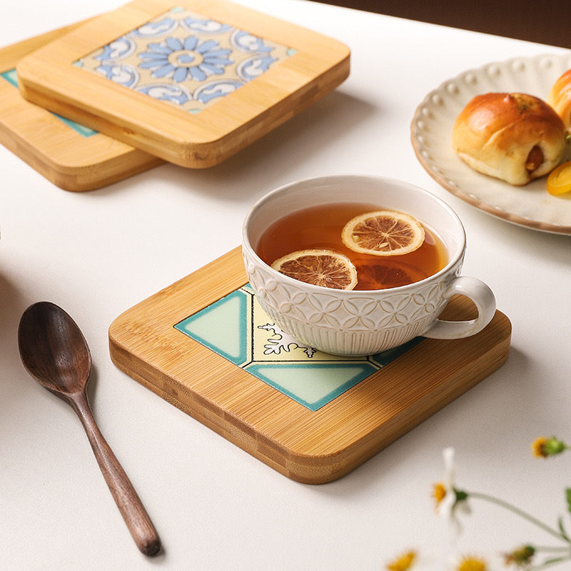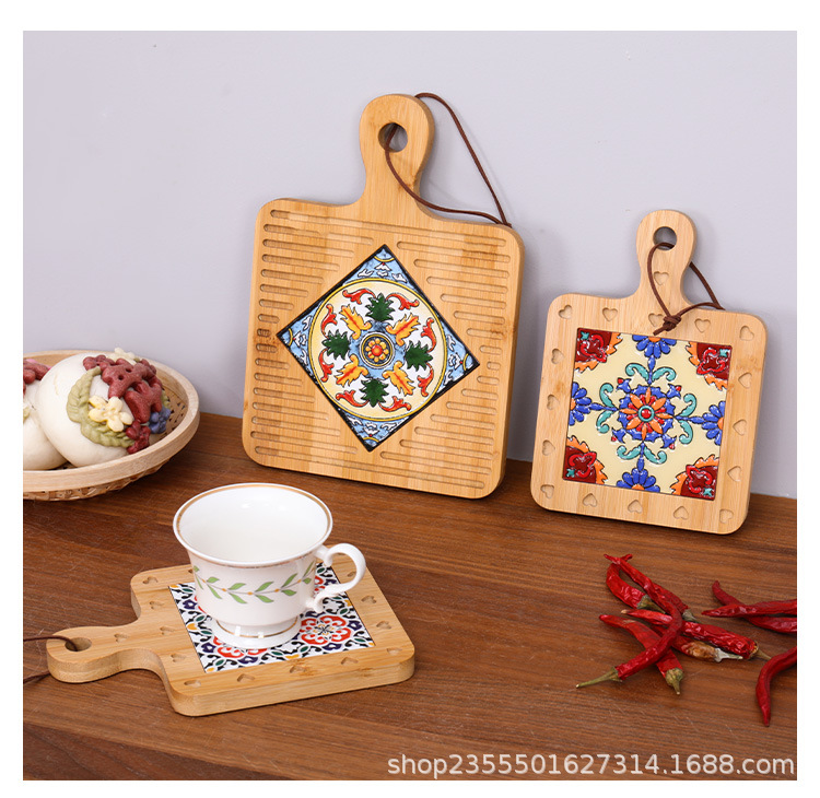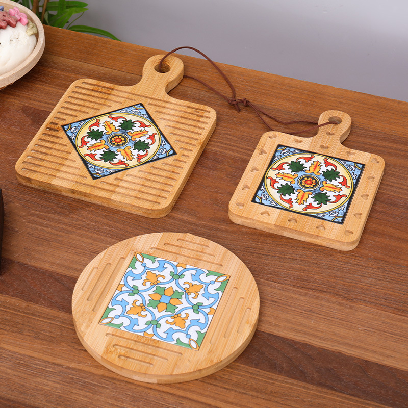 Product Name | Eco-Friendly Bamboo Coaster Healthy Carving Craft Bamboo Mat Handmade Insulated Pads Bamboo Trivet Coaster With Tiles | |||||