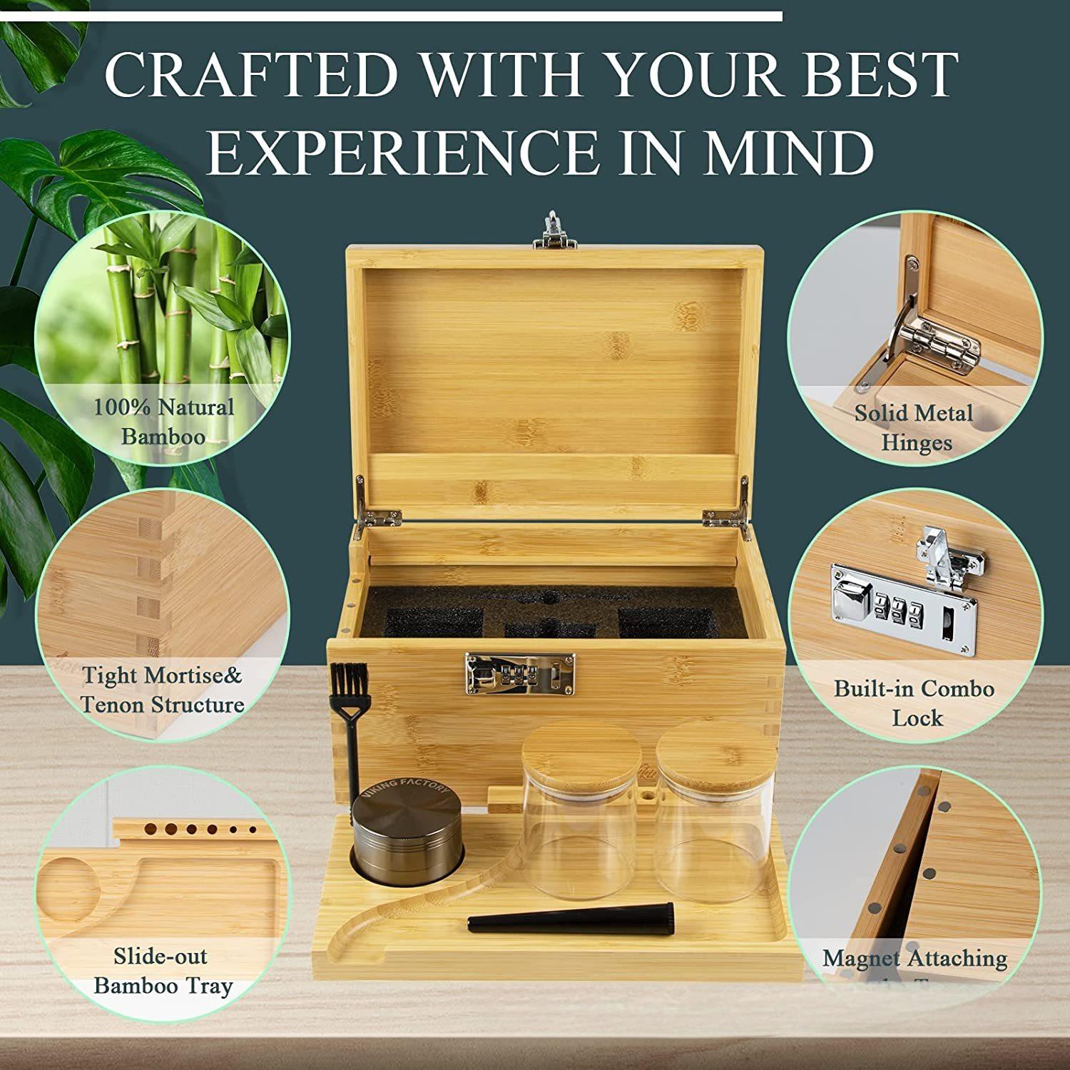 Premium Large Three-Tier Bamboo Box for Home Organization and Decoration Great Gift Set with All Accessories