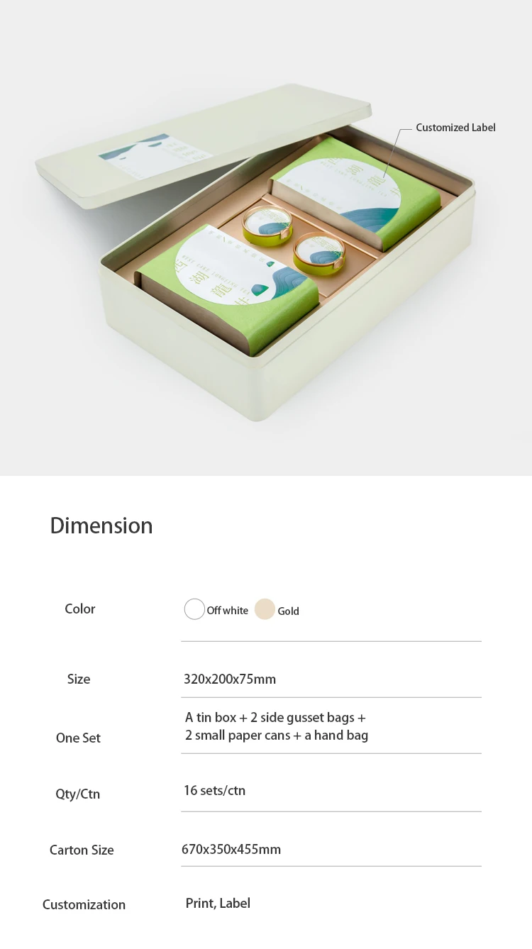 Be the first to review “Rectangle Tea Packaging Gift Set Metal Tin Box White. Gold 0.23mm Tinplate CN;FUJ OTTEA” Cancel reply