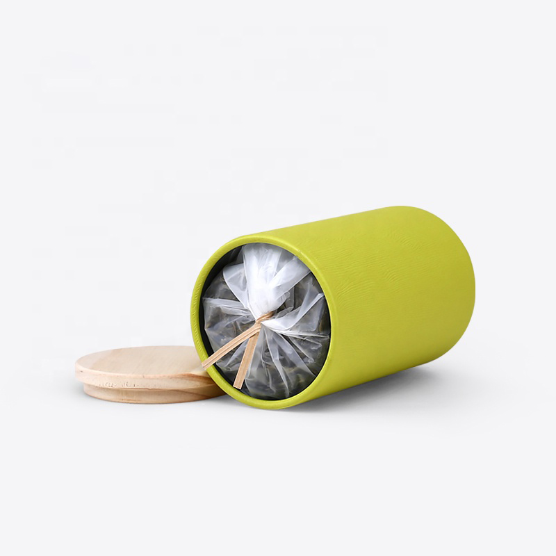 Recyclable Round Kraft Paper Tea Box Packaging With Bamboo Lid for Tea Storage
