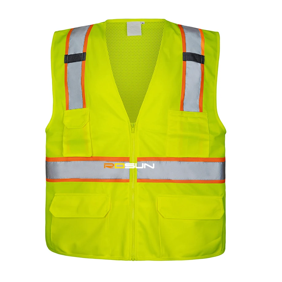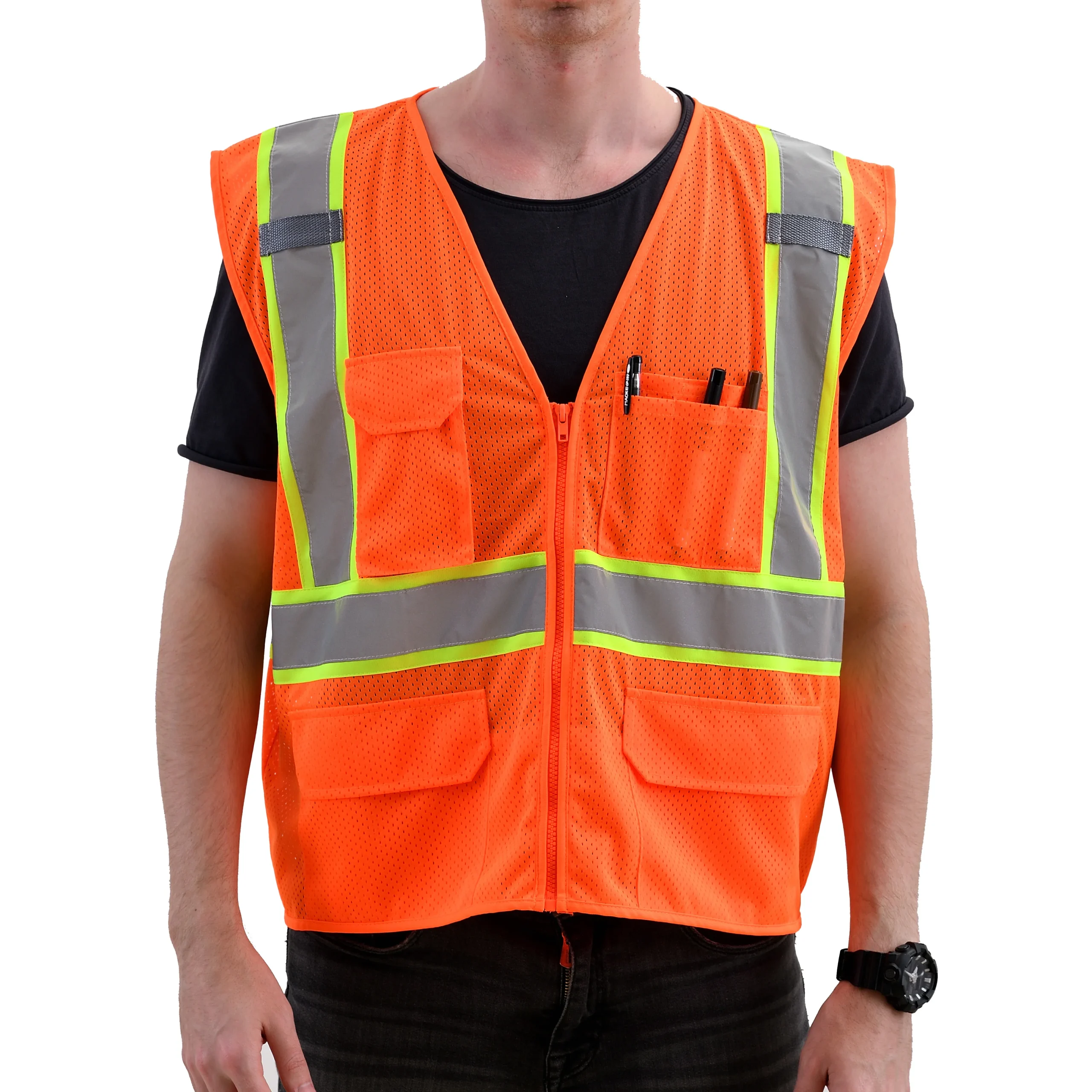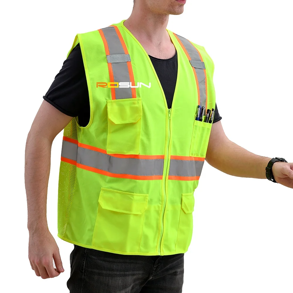 Reflective ANSI Class 2 Security Multi Pocket Safety Clothing Hi Vis Construction Road Work Reflective Vest