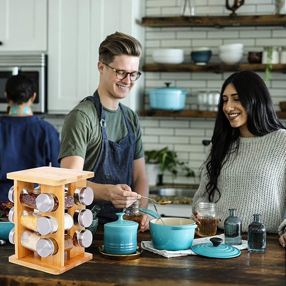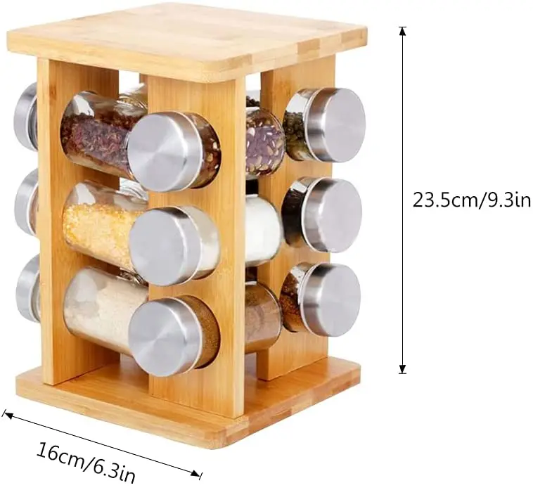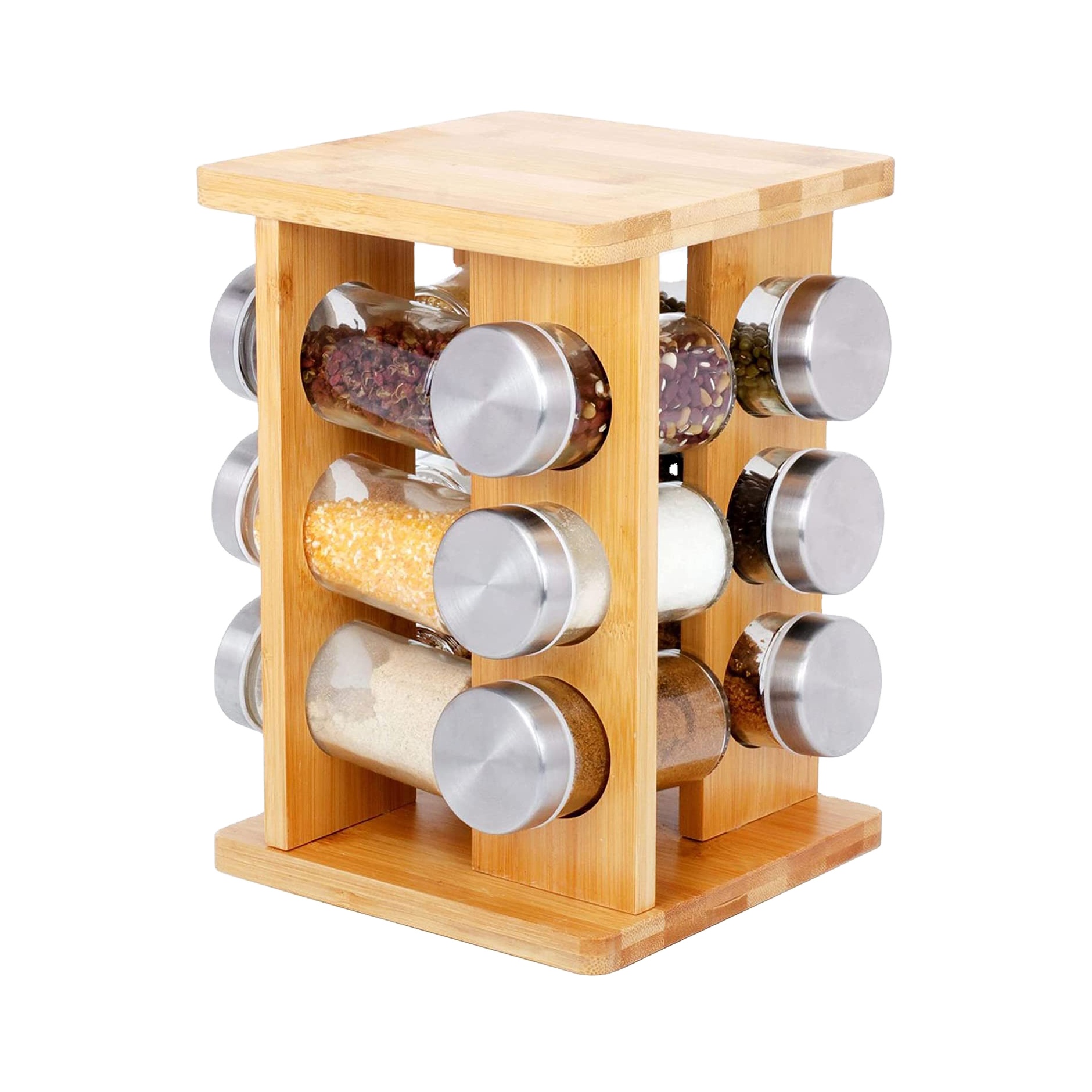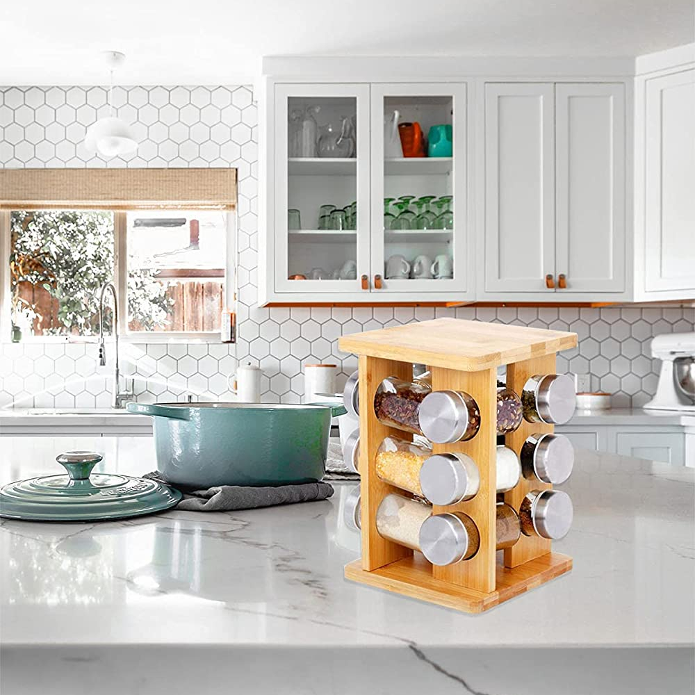 Revolving Spice Rack Organizer Bamboo Rotating Spices Carousel Wooden Spinning Bamboo Holder Cabinet Seasoning Tower Countertop