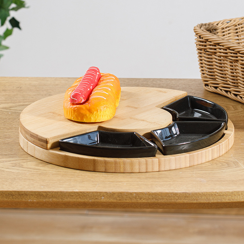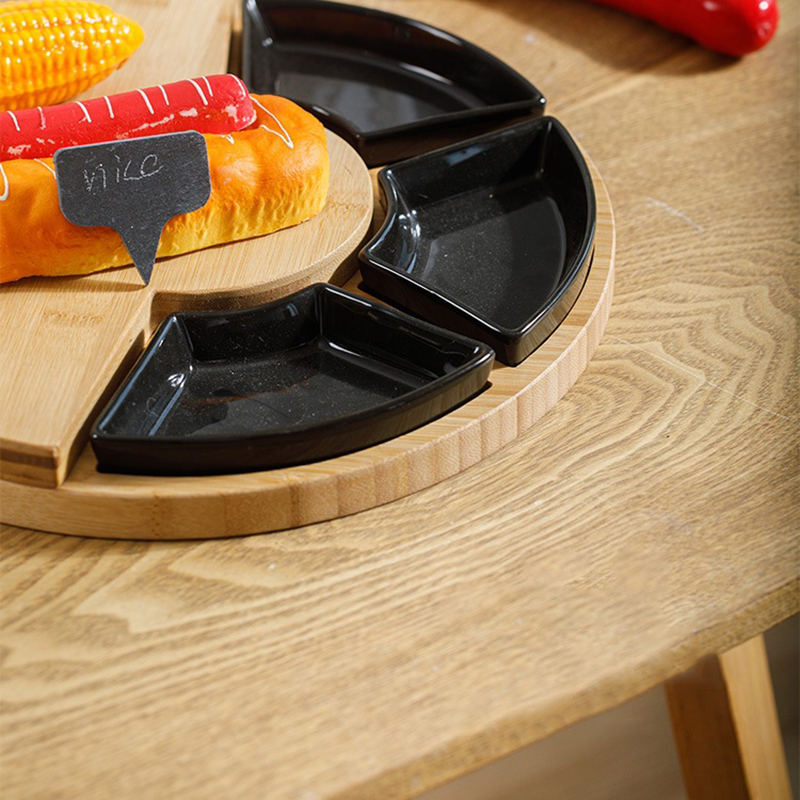 Product Name | Eco-Friendly Bamboo Cheese Board Set Cheese Board and Knife Set Round Cheese Platter with 3 Ceramic bowls | |||||