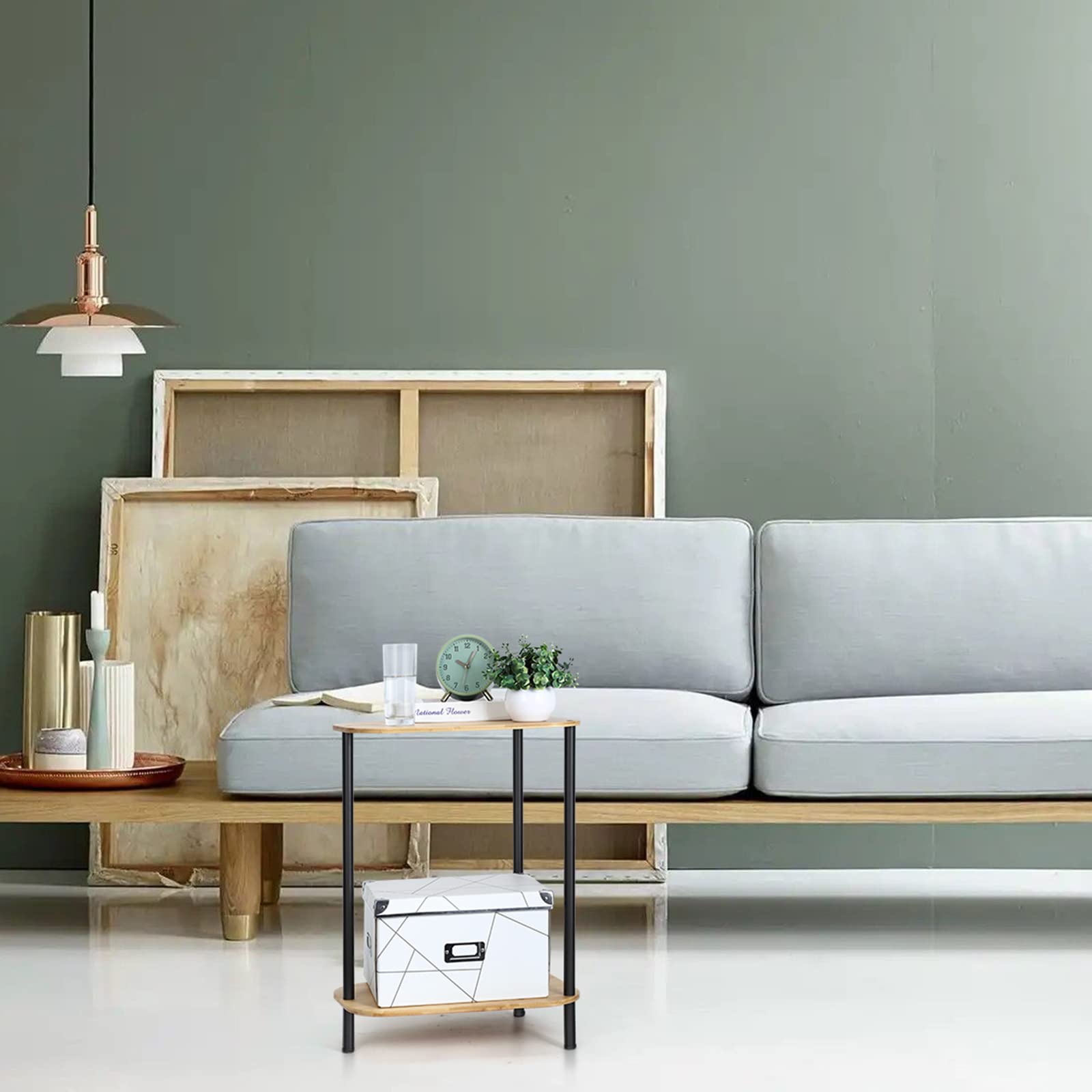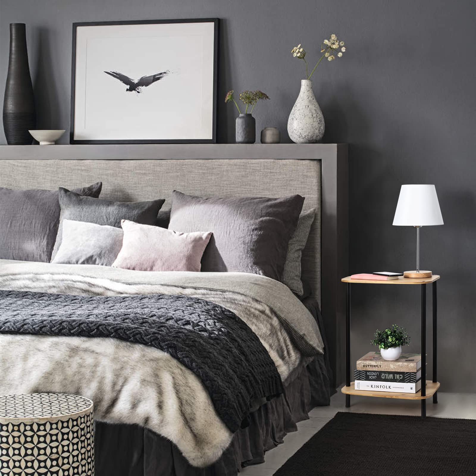 Set of 2 Side Table for Small Spaces. Bamboo End Table Living Room. 2 Tier Night Stands for Bedrooms with Storage Shelf