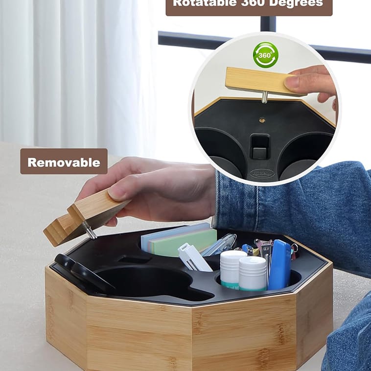 Be the first to review “Silicone Bamboo Sofa Couch Cup Holder Tray with Remote Storage Organizer Rotatable Phone Holder for Living Room Snacks Drinks”