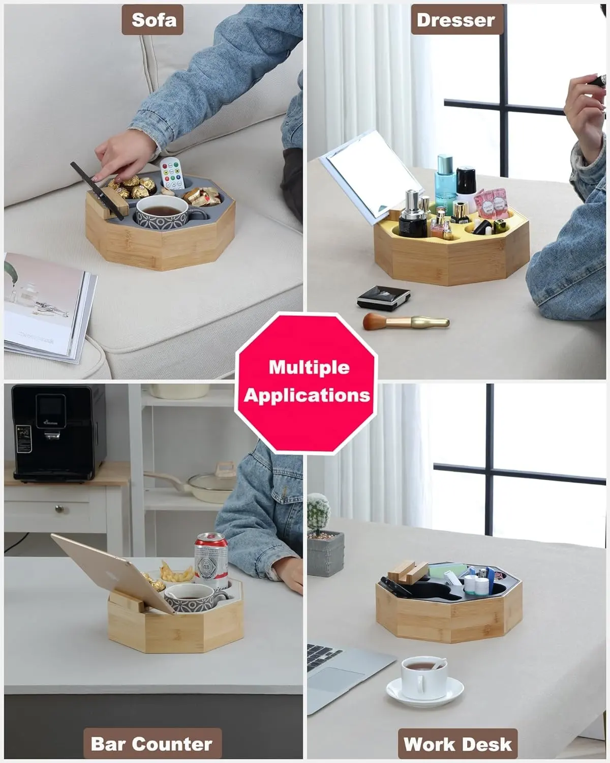 Snack Drink Remote Couch Caddy Storage Organizer With Rotatable Phone Holder Silicone Bamboo Sofa Couch Cup Holder Tray