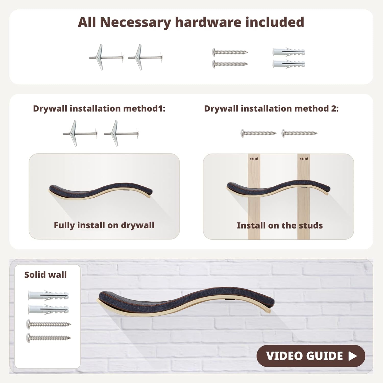 Simple Floating Cat Perches on the Wall Wave Modern Cat Bed Wooden Wall-mounted Cat Furniture