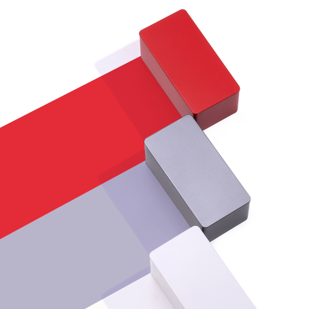 Red. Grey. Ivory