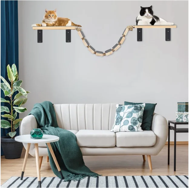 Solid Wooden Cat Climbing Frame Cat Jumping Platform Dangling Bridge Soft Jumping Ladder Wall Mounted Cat Hut