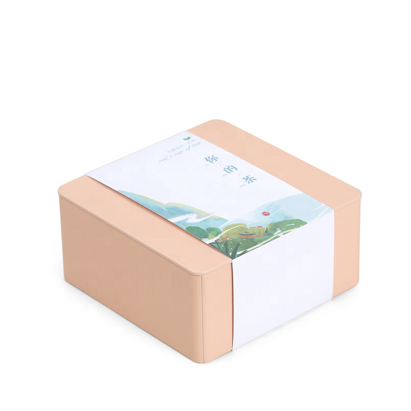 Square Storage Cookie Packaging Tea Tin Box White Customizable Metal Boxes Making for Sweets Biscuits