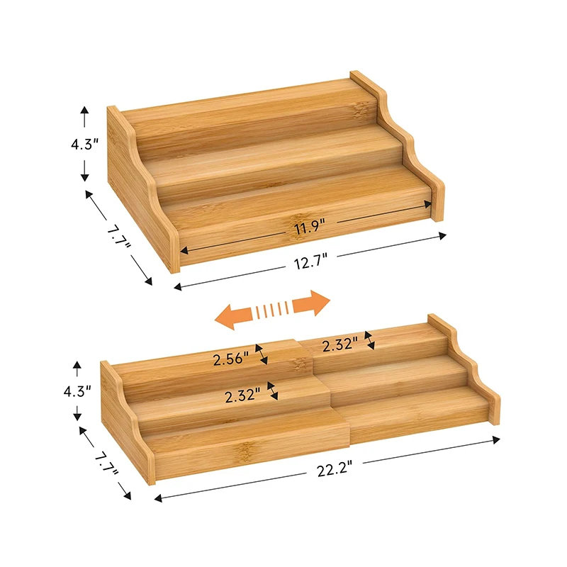 Supplier Spice Rack Kitchen Cabinet Organizer 3 Tier Bamboo Expandable Display Shelf