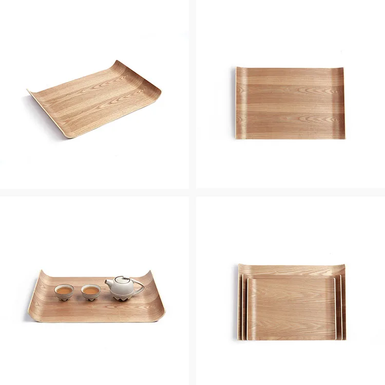 Top Sale Radian Rectangle Melamine Plywood Non Slip Wooden Tray Manufacture Wholesale
