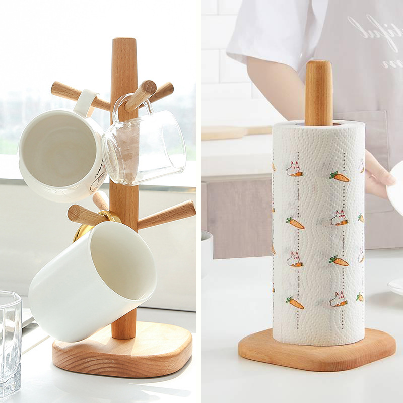 Tree Shape Bamboo Mug Stand with 6 Hooks Kitchen Storage Organizer & Coffee Tea Cup Holder