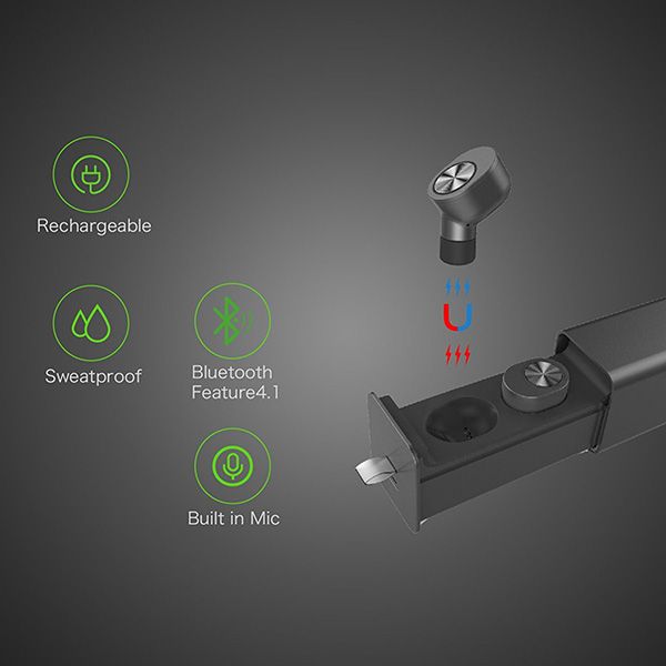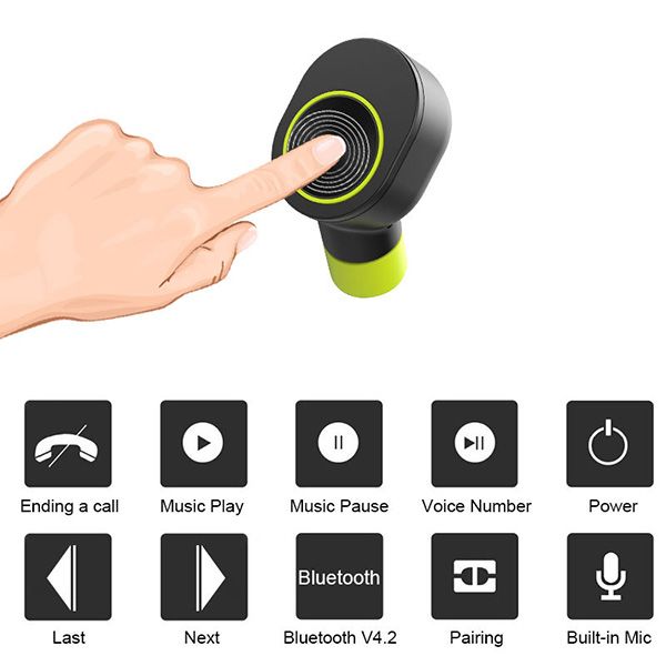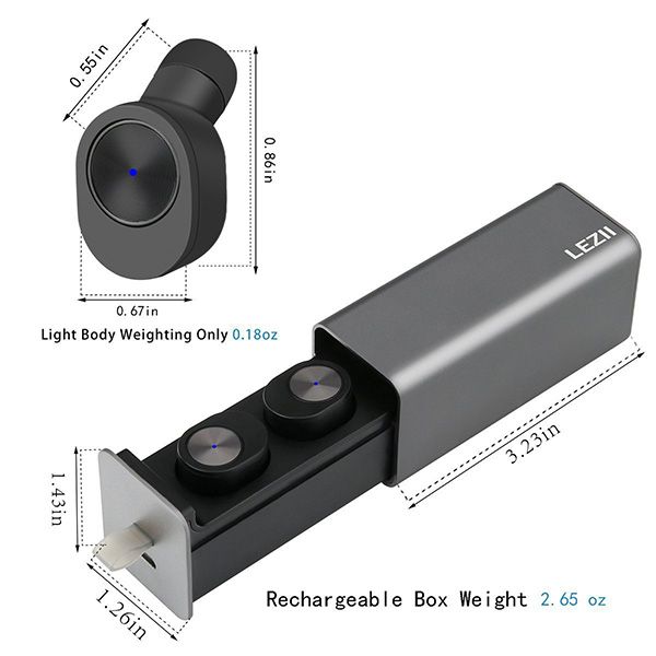Bluetooth V4.2+EDR chipset: ACTION2823S supported Profile: A2DP/HFP/HSP/AVRCP Battery: 50mAh per earbud Battery: 450mAh for charging socket