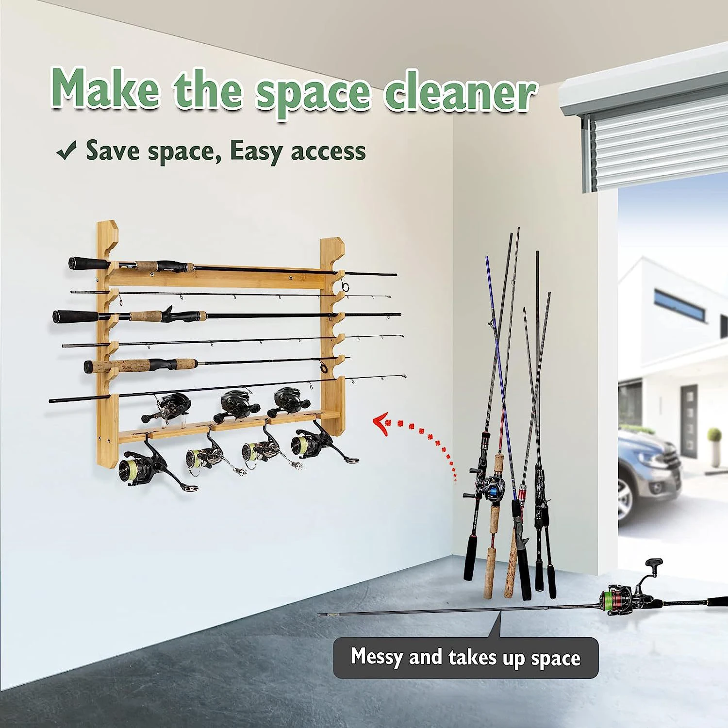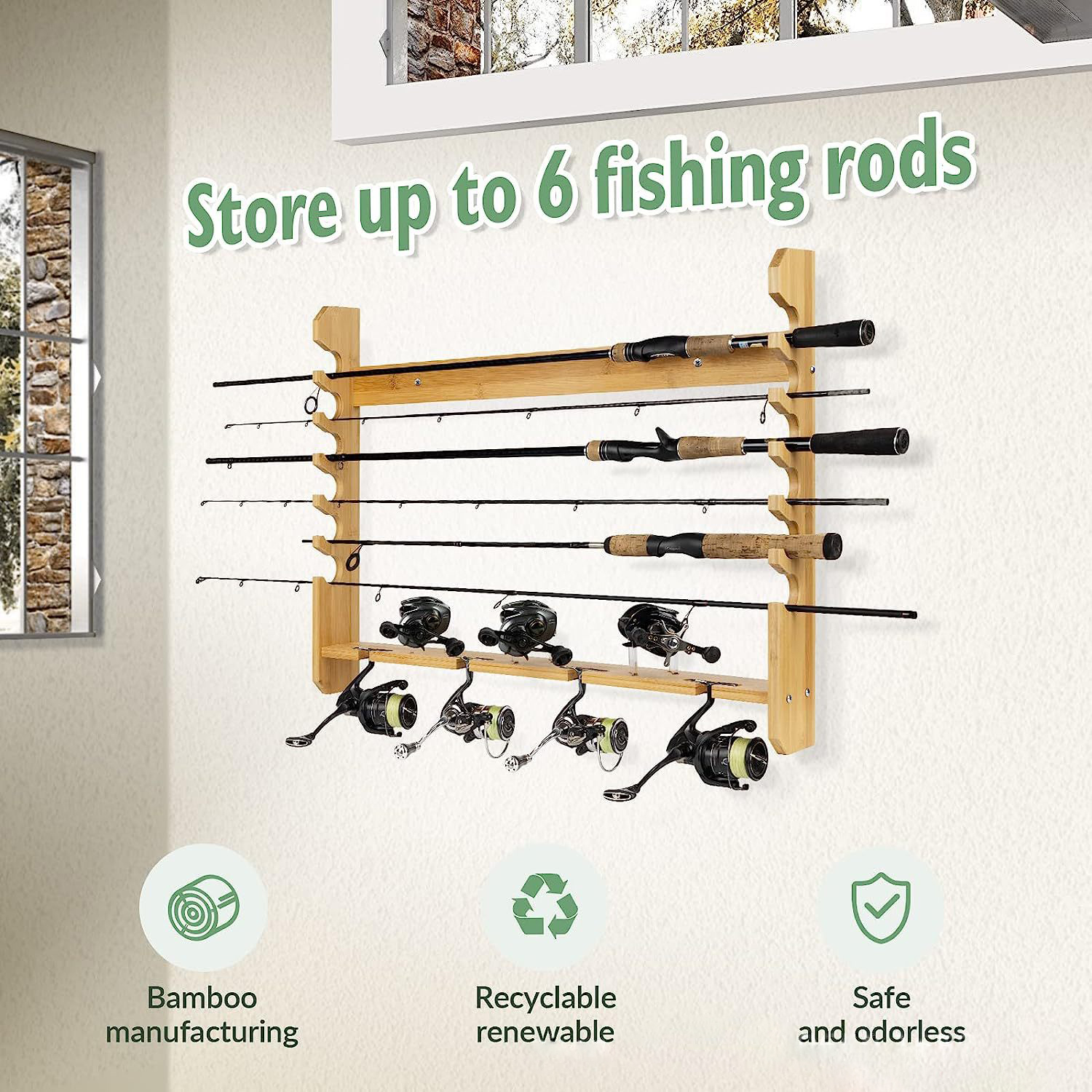 Wall Mounted Fishing Rod Rack Fishing Tools Accessories Spinning Baitcasting Reels Fishing Pole Organizer 6 Rod Storage Racks