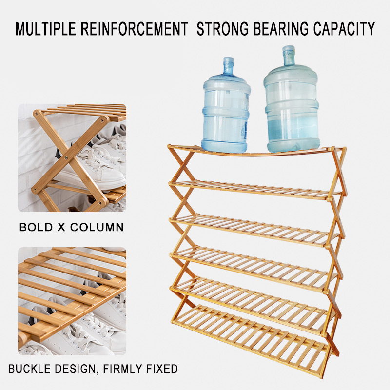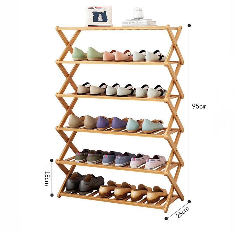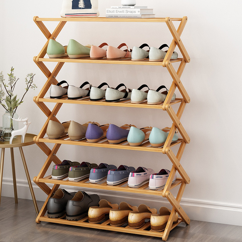 Wholesale Home Footwear Storage Organizer Shelf Flowerpot Shelves Folding Wooden Bamboo Shoe Rack Foldable Shoe Rack