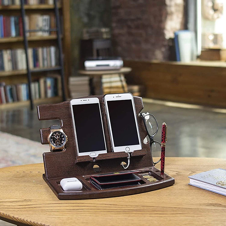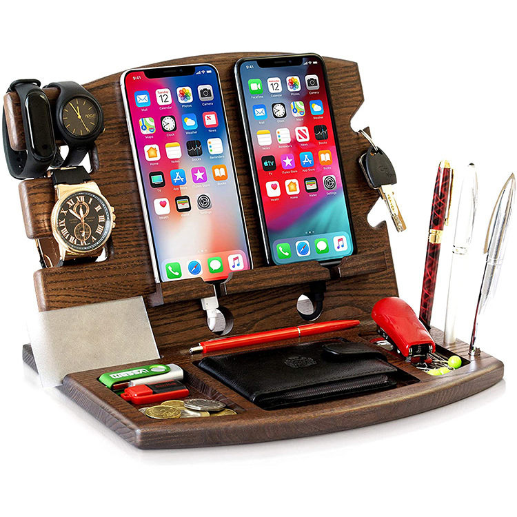Wood Cell Phone Stand Watch Holder Charging Docking Station Personalized Charging Gift Station