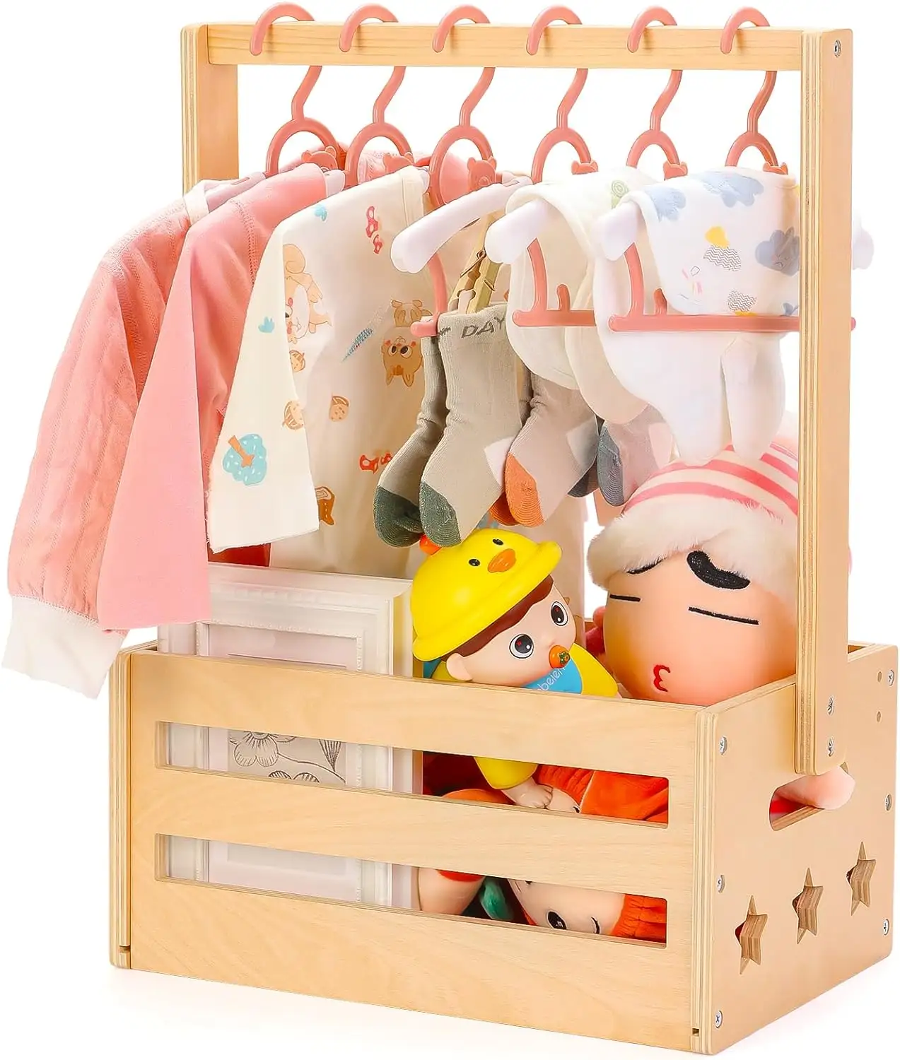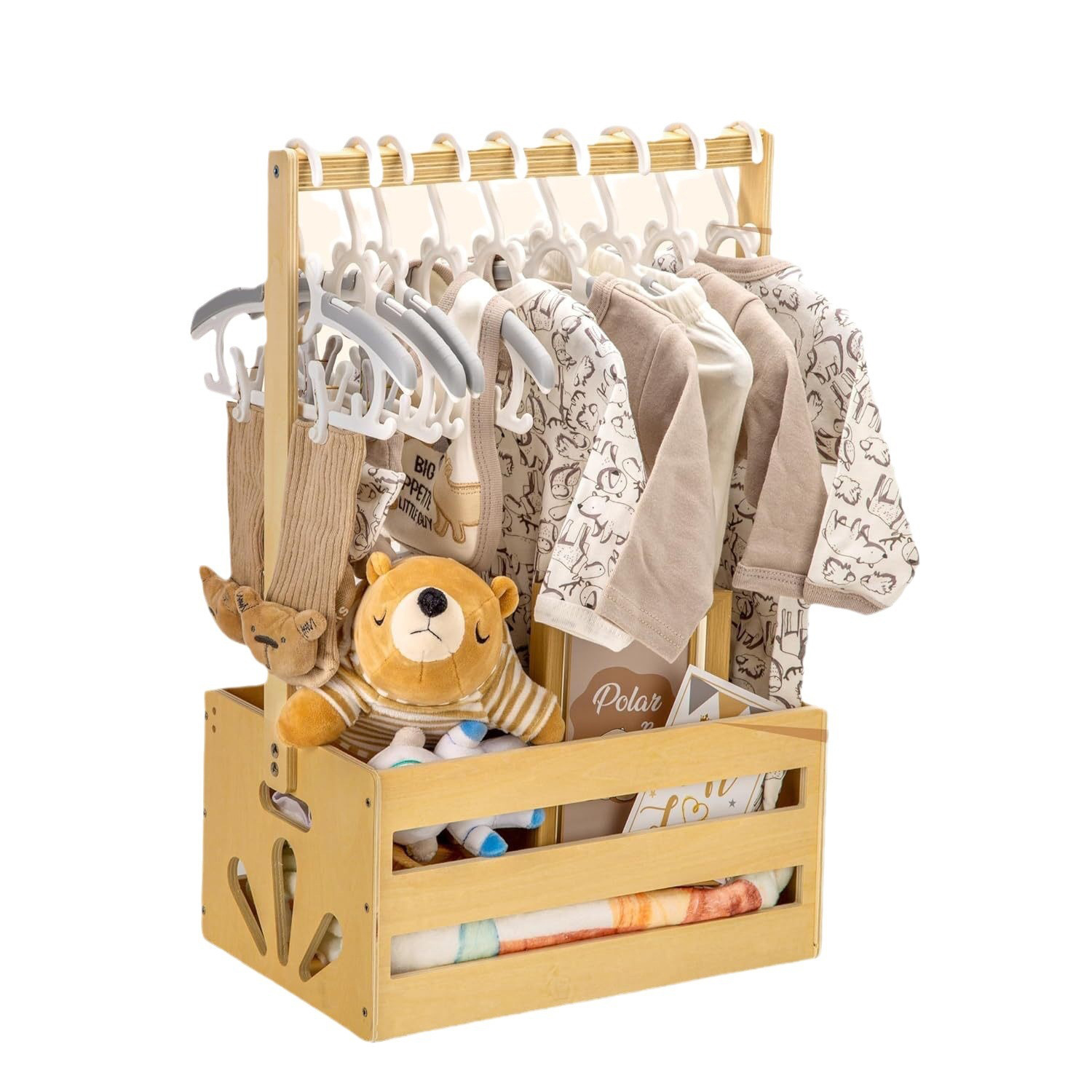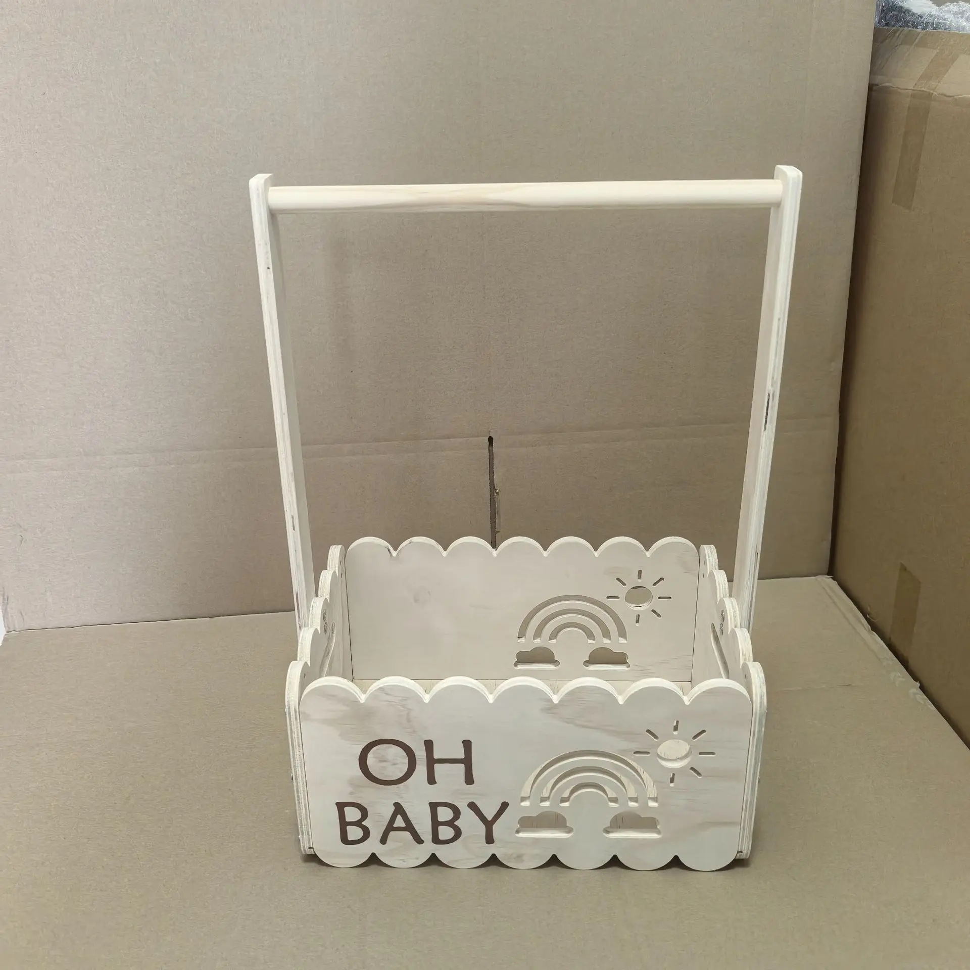 Baby Shower Gifts Basket Carrier Wooden Baby Shower Crate Closet Baby Wooden Crate Welcome Box with Handle for Newborn
