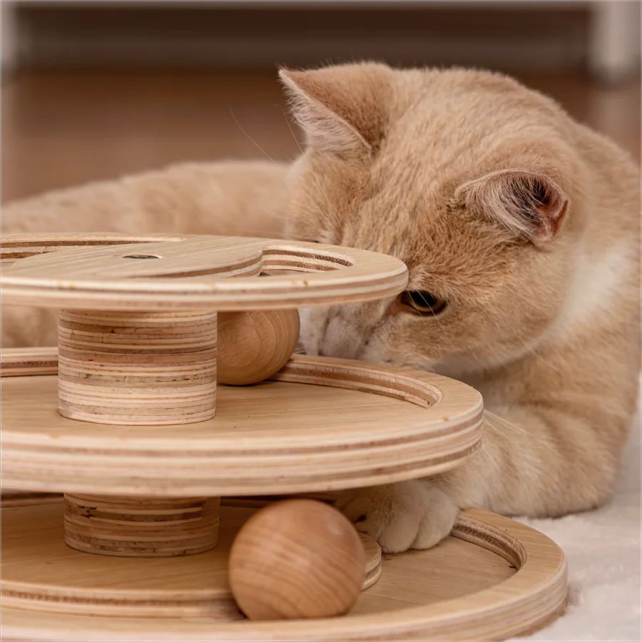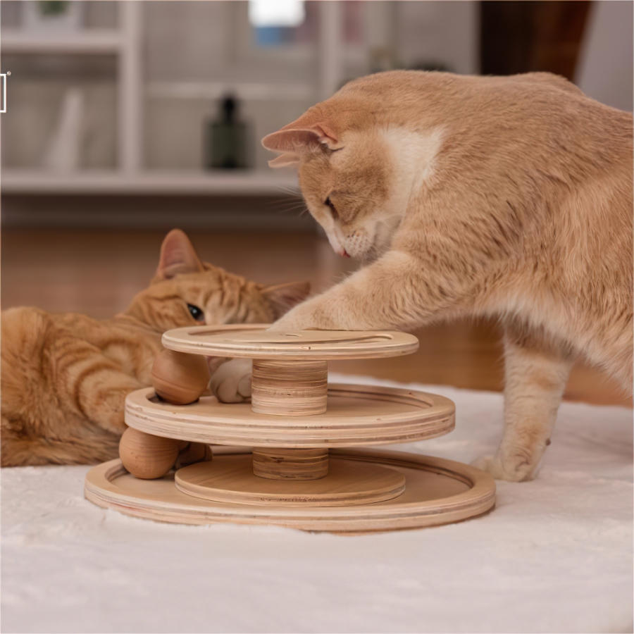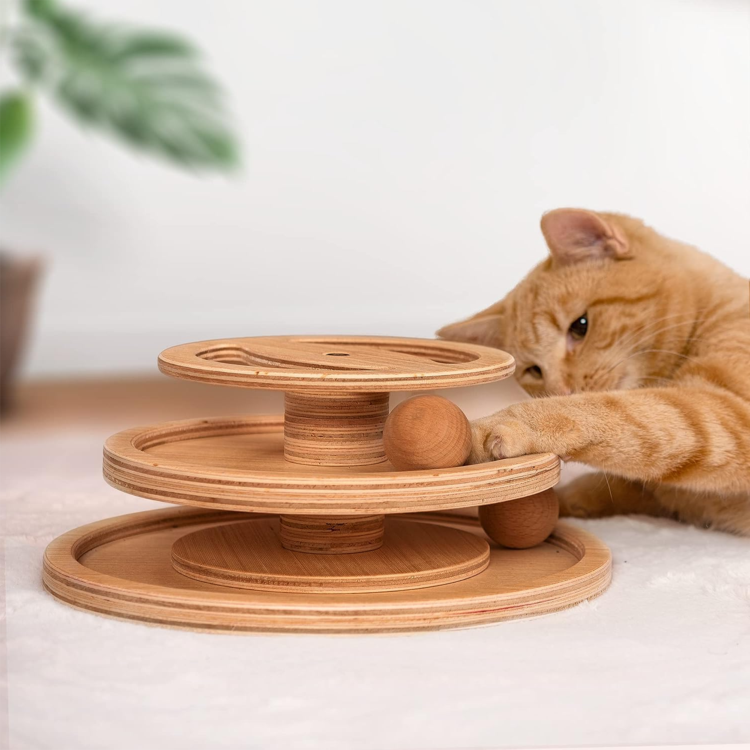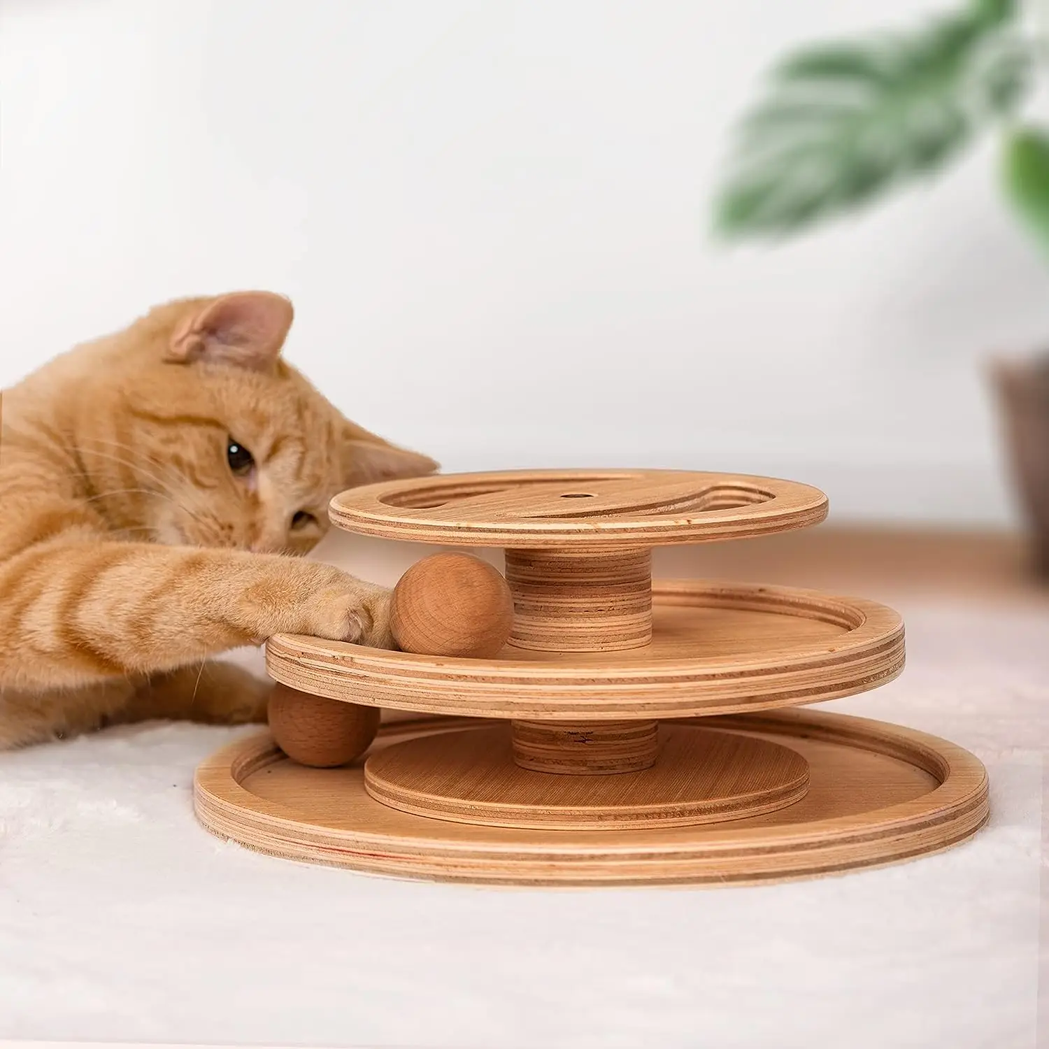 Wooden Cat Ball Toys Roller Tower With Removable Balls Interactive With Cat Circle Track DIY Fun Toy