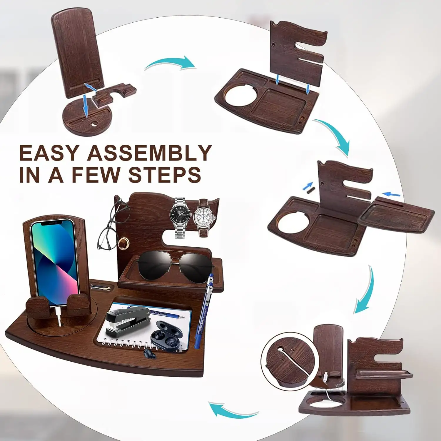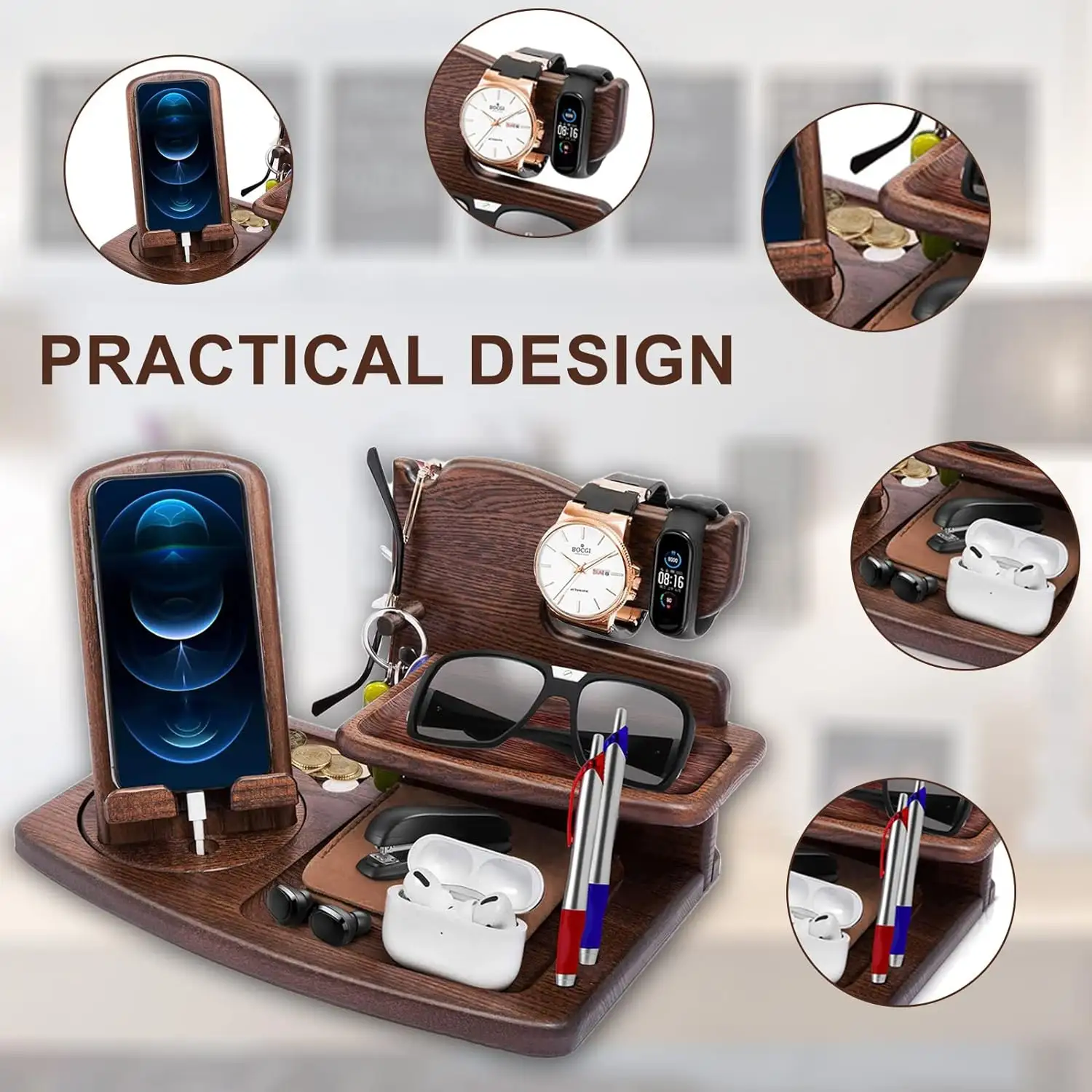 Product Name | High Capacity Drawer Desktop Nightstand Organizer Black Wood Phone Docking Station | |||||