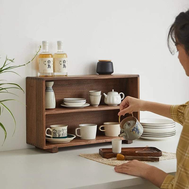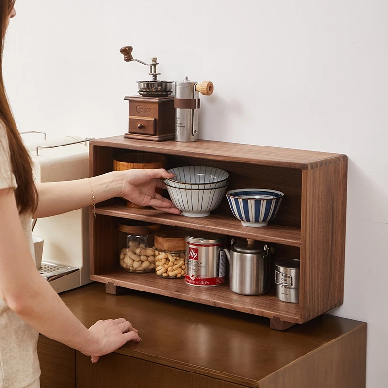 Wooden Counter Shelf Organizer Kitchen Spice Rack for Countertop Wood Coffee Counter Organizer for Home Storage Racks