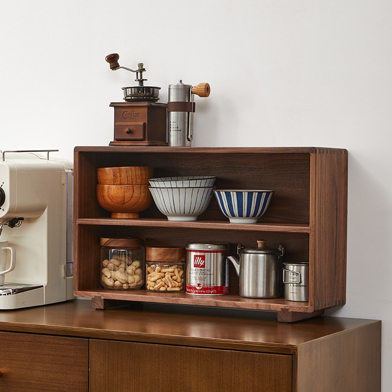 Wooden Counter Shelf Organizer Kitchen Spice Rack for Countertop Wood Coffee Counter Organizer for Home Storage Racks