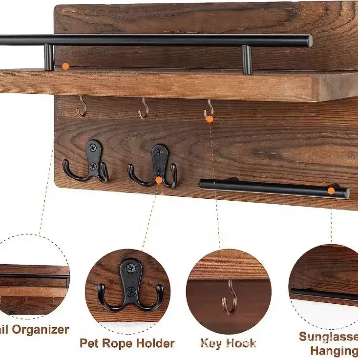 Be the first to review “Wooden Keychain Storage Rustic Farmhouse Entryway Shelf with 4 Double Hooks Decorative Rack Home Decoration Shelves” Cancel reply